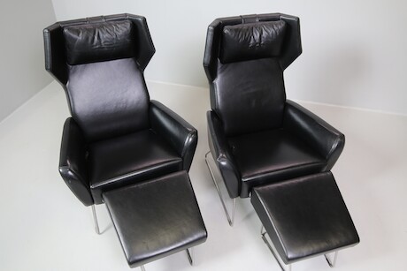 Bilder Roger Persson, fåtöljer ett par Swedese, med fotpallar, skinn & metall, ställbara