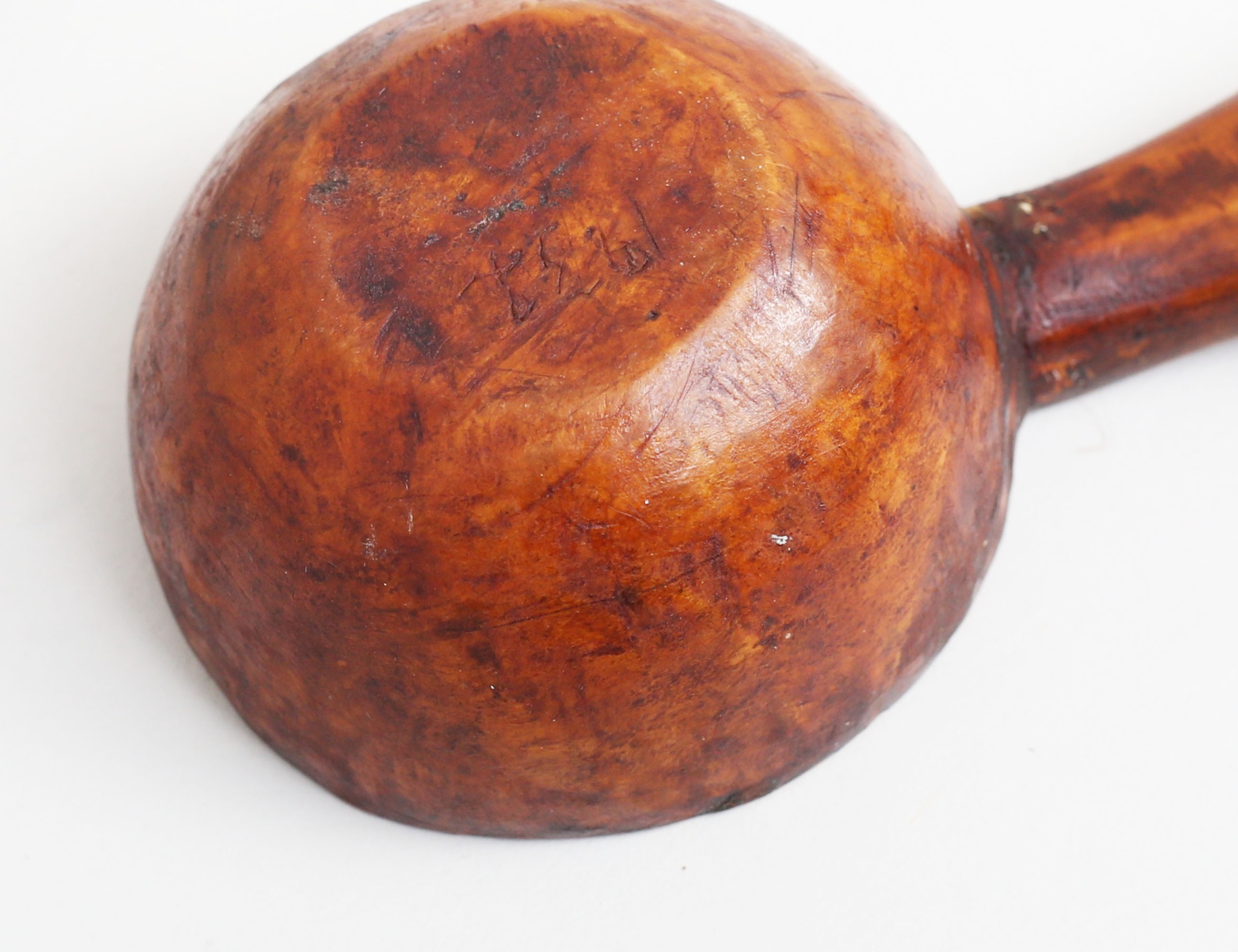 kniven helhorn med ciselerad dekor, längd 15,5 (21), kåsan skuret trä, märkt 1932, längd 10 (2)