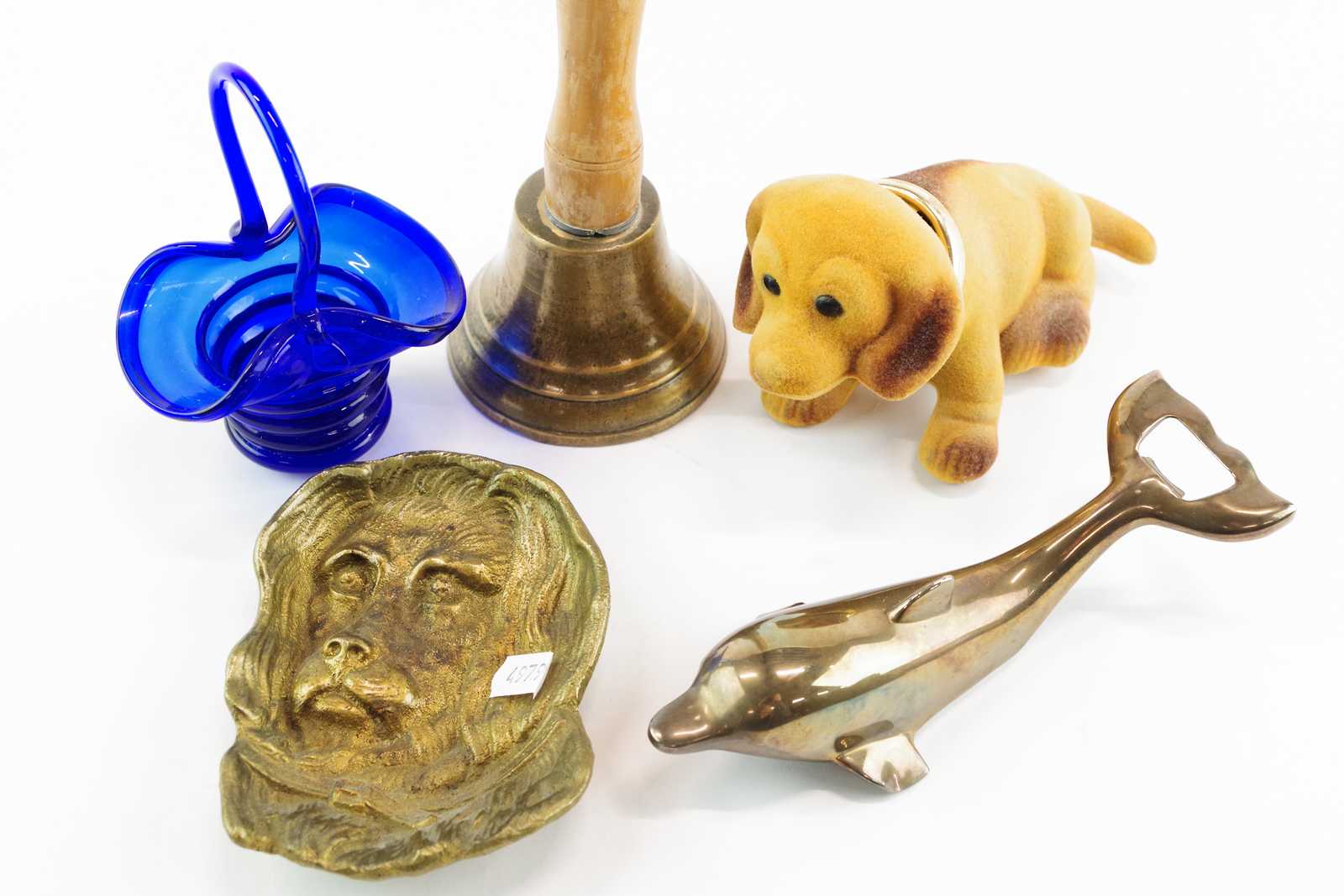 Bilder SKOLKLOCKA, ASKFAT, GLASKORG H:13 cm, HUND & KAPSYLÖPPNARE