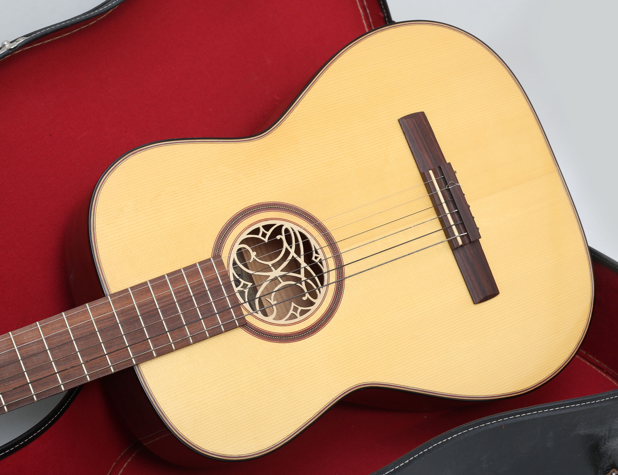 modellnummer 116, serienummer 549535, olika träslag, intarsiadekor, i hardcase, längd 95