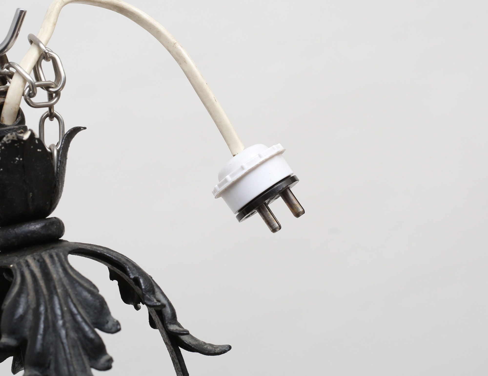 skulpterat smide, blyinfattade glas i olika färger, höjd 48