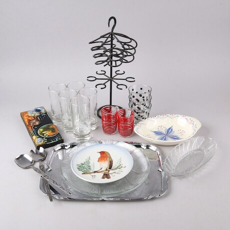 Blå dekor, kaffekanna modell 518, höjd ca 23 cm, 9 st kaffekoppar med fat modell 719, kopparnas höjd ca 6 cm samt 2 askkoppar modell 1004, diameter 7,5 cm