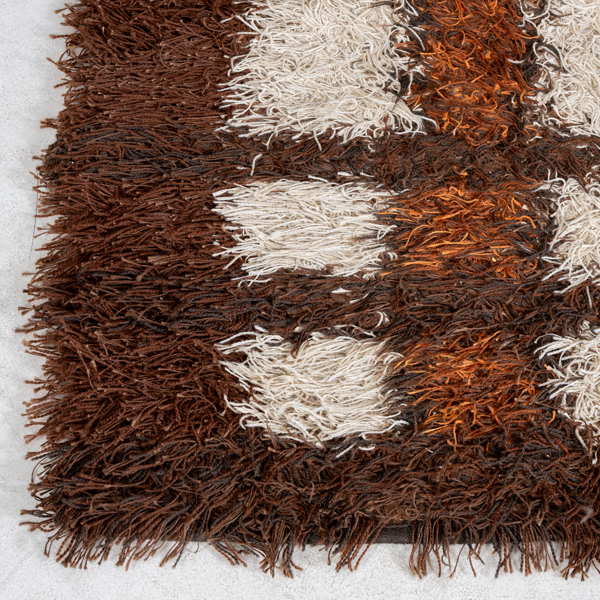 Mönster i brunt, beige och orange, ca 237 x 170 cm