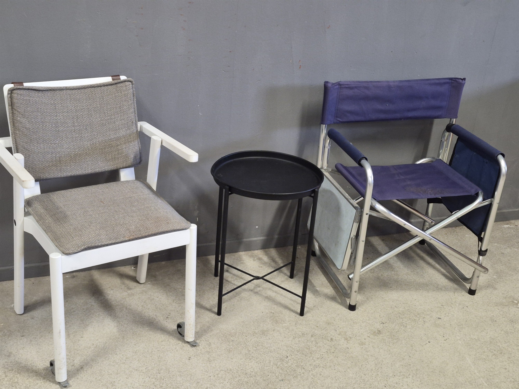 Campingstol med fällbar skiva, stol med hjul & metallbord högsta 80 cm