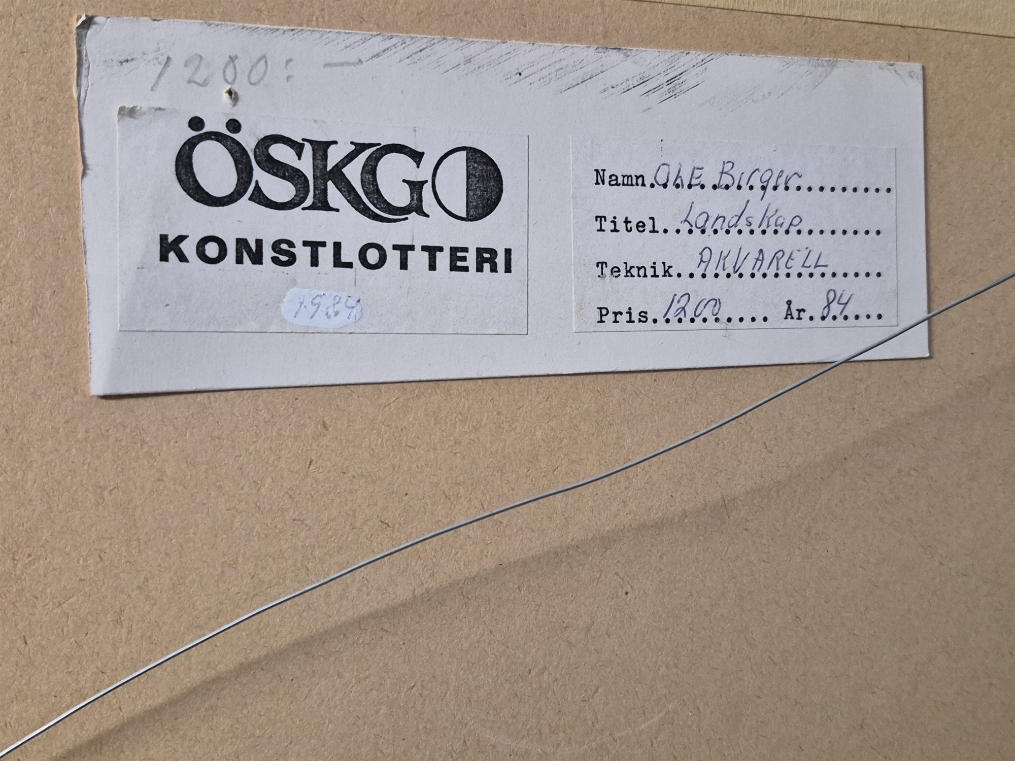 Bilder Ole Birger, akvarell "Landskap, mått 58 x 49 cm