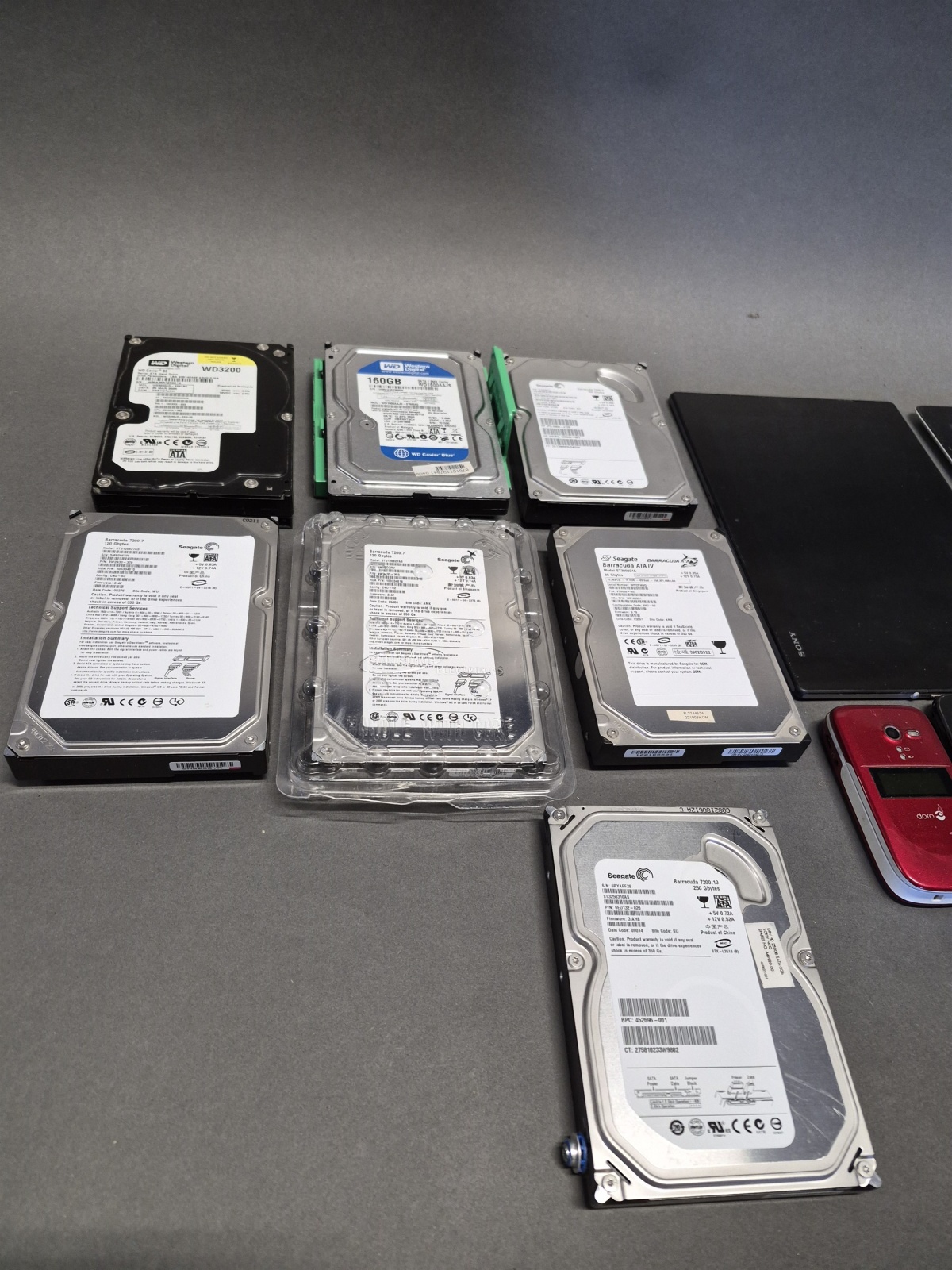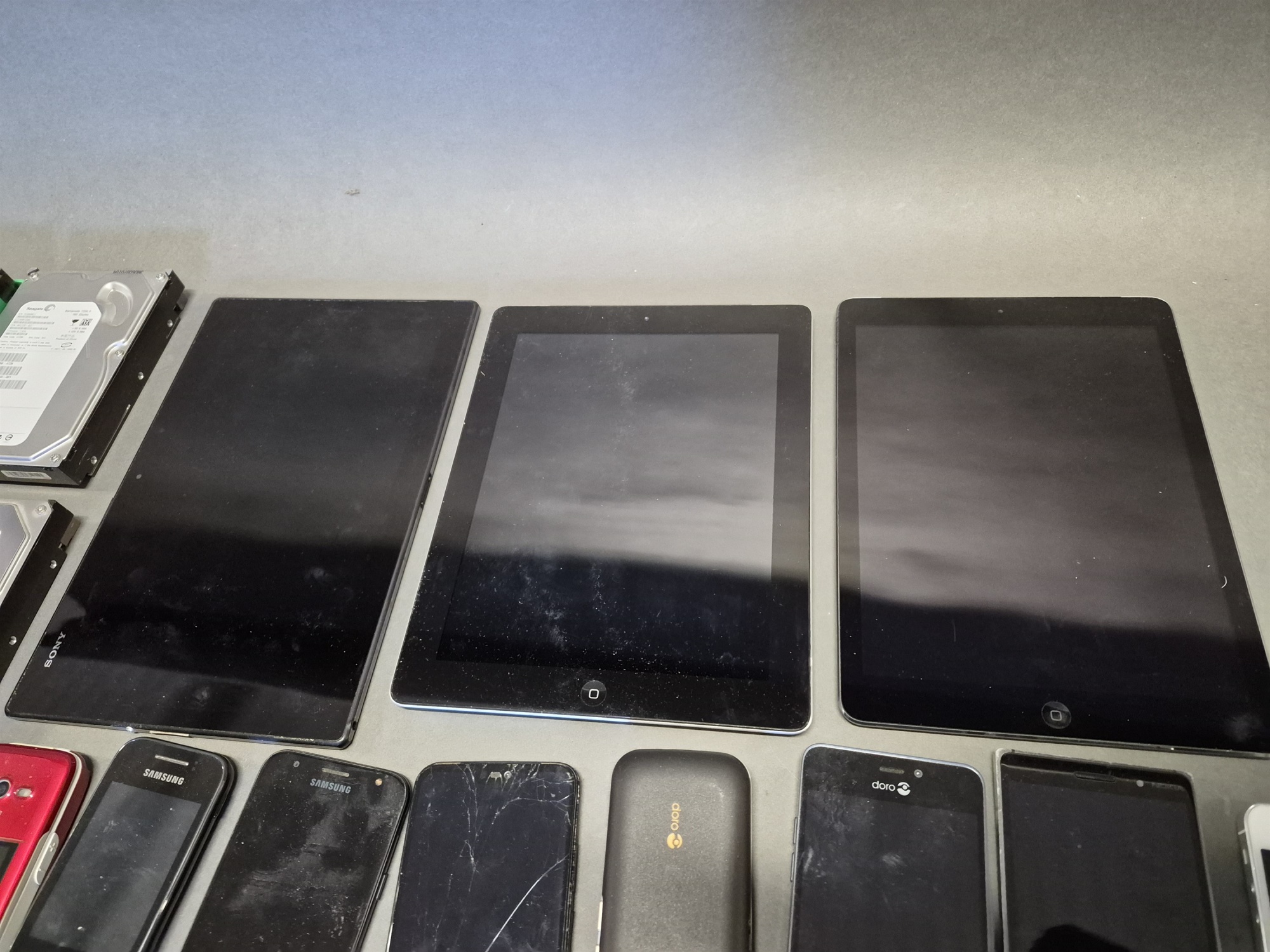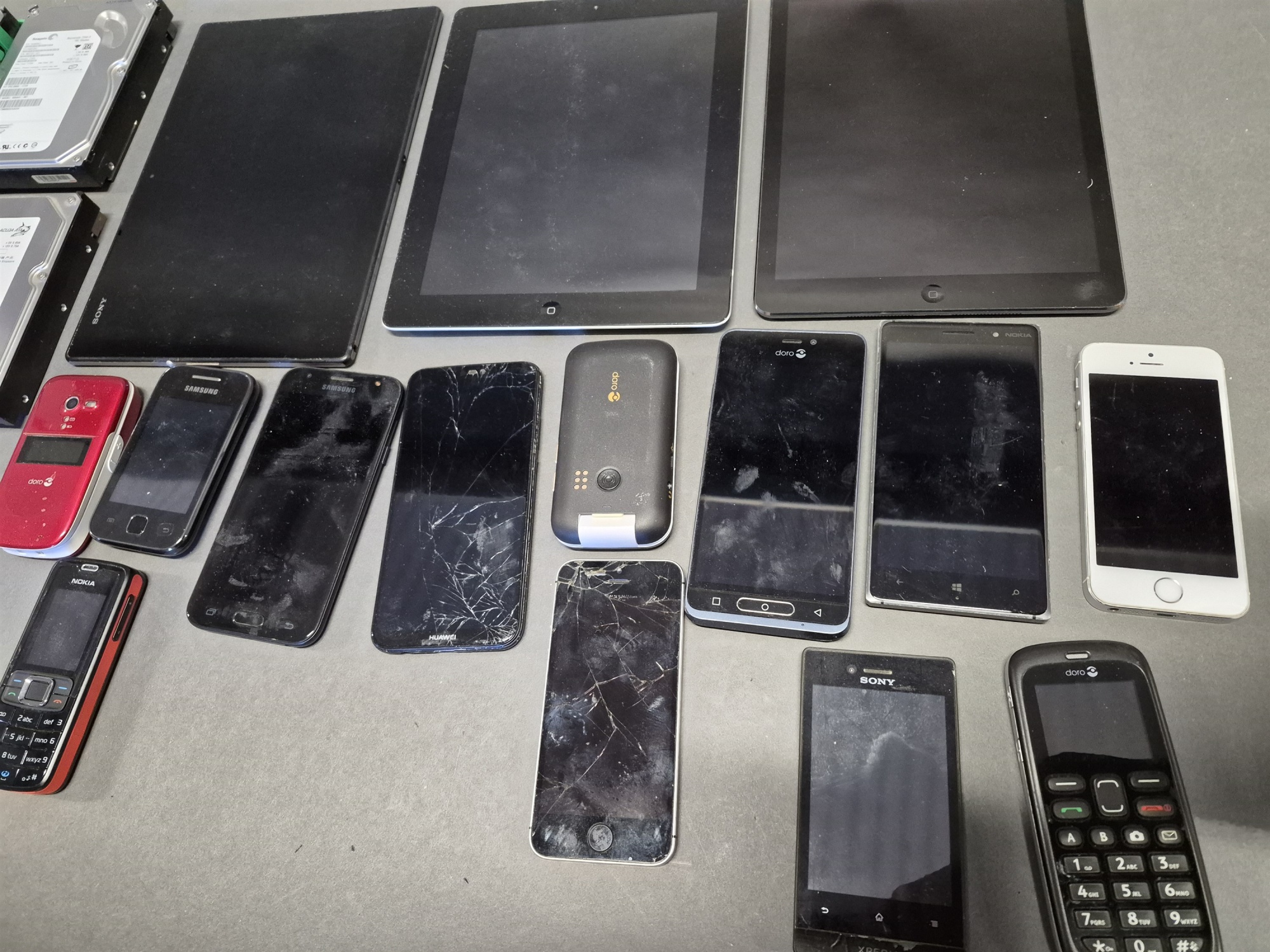 Auktioner Elektronik Parti teknik; hårddiskar, surfplattor och mobiltelefoner, ej testat eller genomgånget, okänd funktion