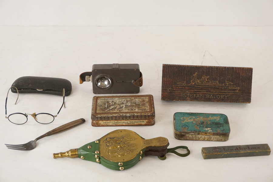 Bilder Stefan Batory trälåda, militär ficklampa mm. A85/