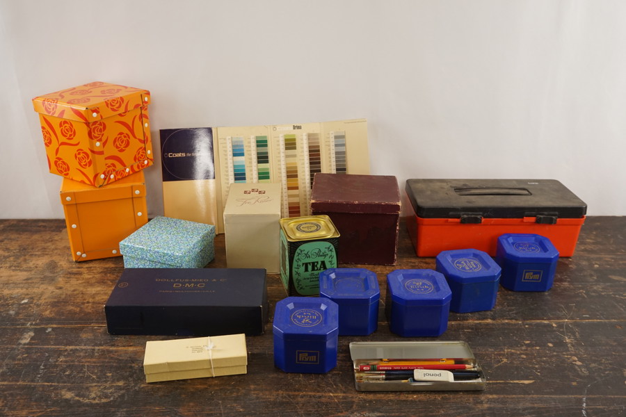 Färgkarta och garnprov, lådor mm. B306
