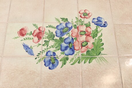 Soffbord björk med kakelplattor, 1900-talets mitt, 83x54x59 cm