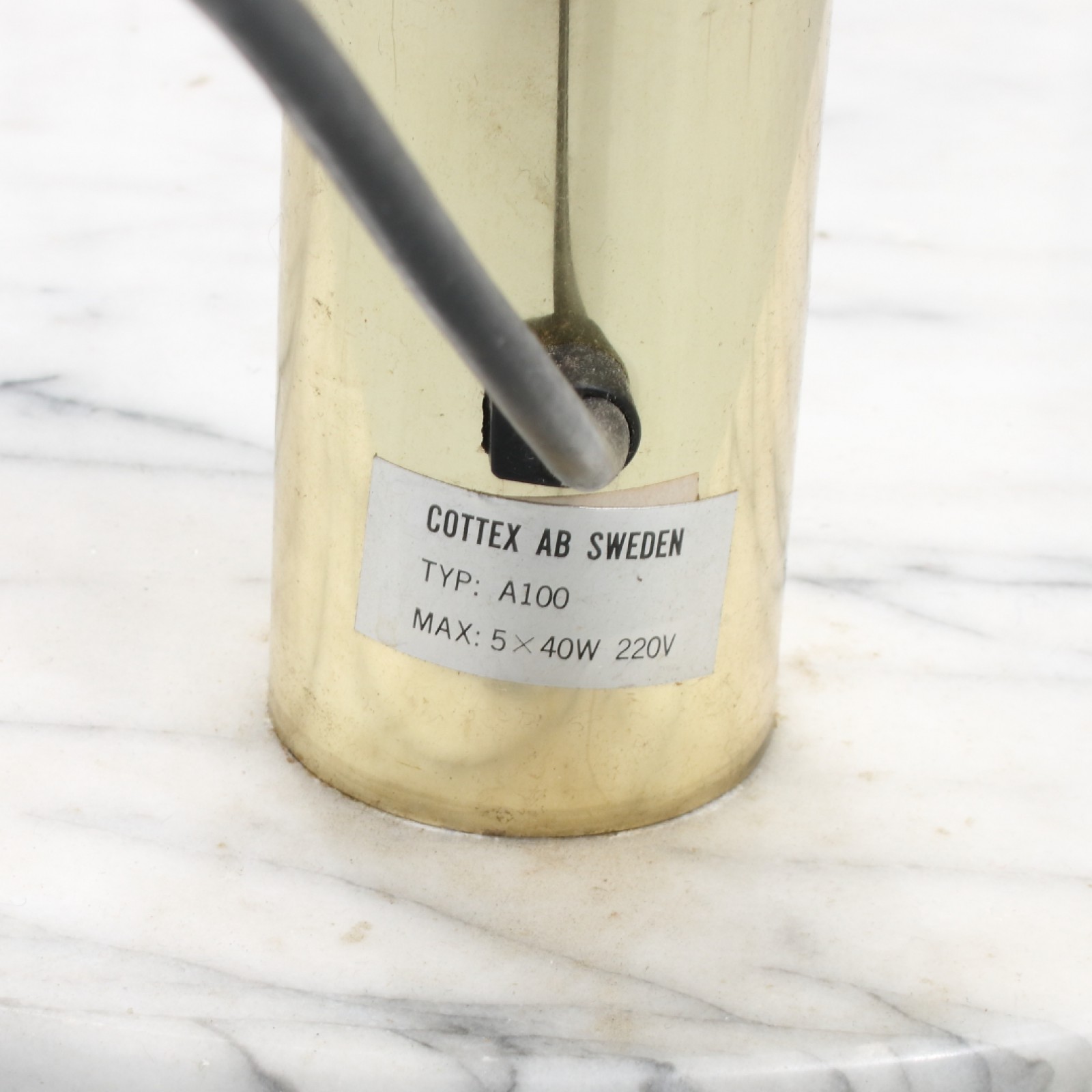 Mässingsfärgad metall, Fot i sten, 5-armad, 1900-talets senare del, reglerbara armar och skärmar, fot med mindre avslag (se bild), höjd 175-220 cm. (vån2)