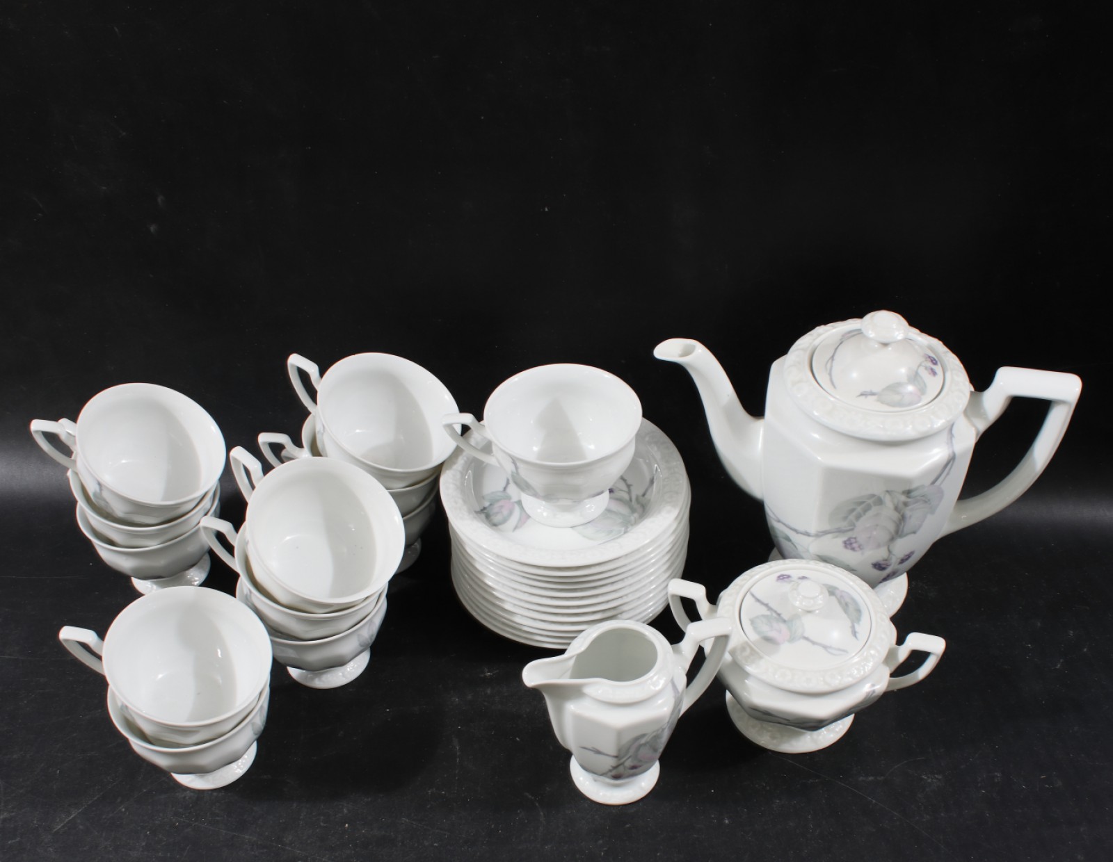 26 delar, 11st kaffekoppar, 12st kaffefat, 1st kaffekanna, 1st sockerskål med lock samt 1st gräddkanna. (vån3)