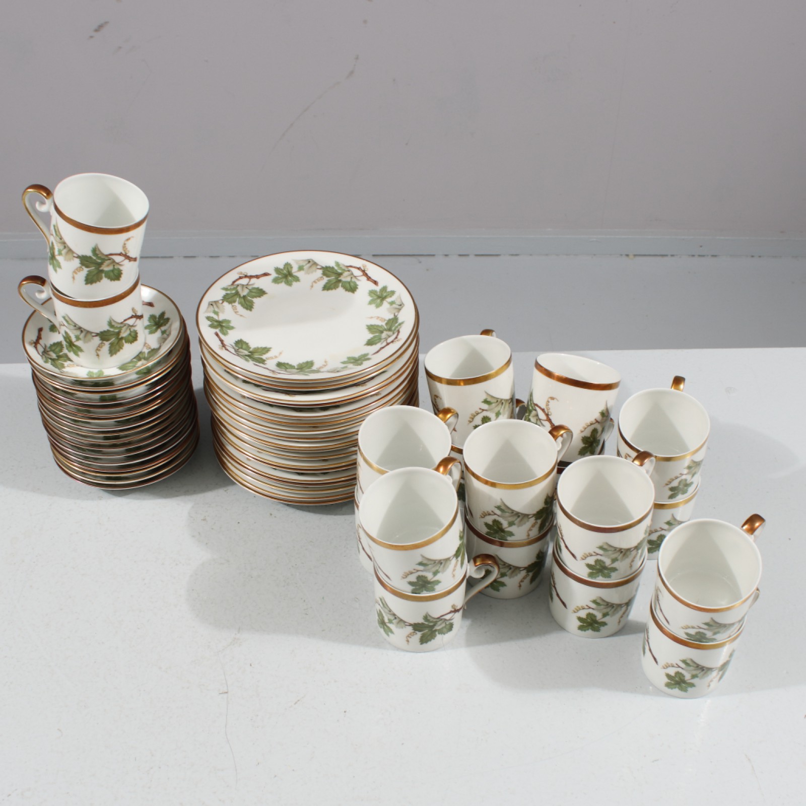 53 delar, 18st kaffekoppar H.6 cm, 17st kaffefat ø.11 cm samt 18st assietter ø.15,3 cm. (vån3)