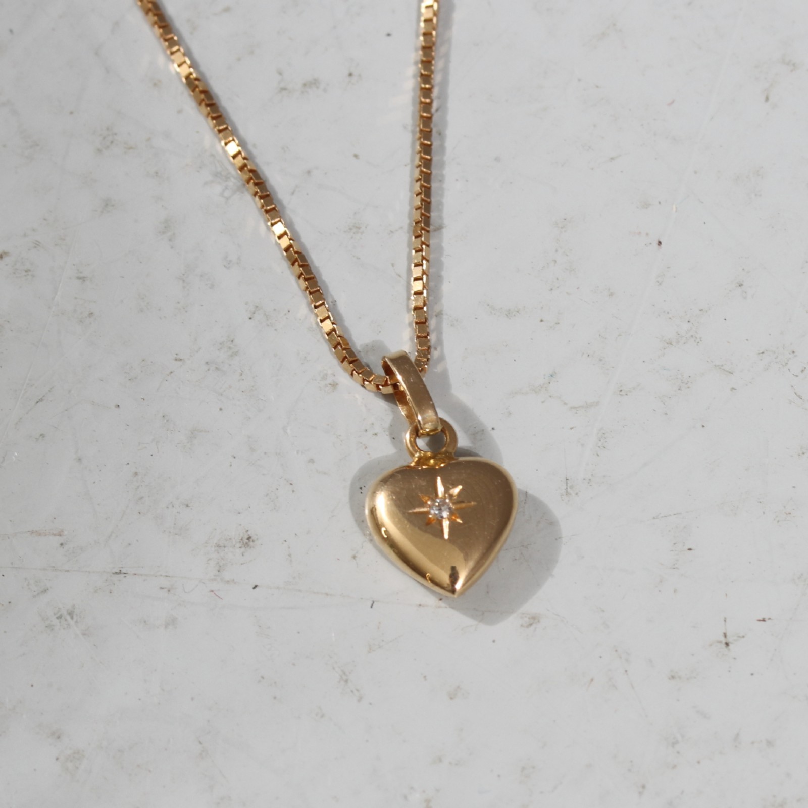 Halsband med hjärtformat hänge i 18 karat guld, längd halsband 35 cm, vikt 2,65 gram. (vån3)