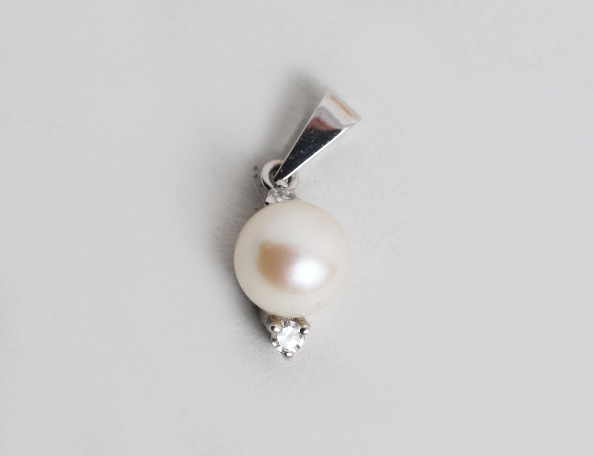 briljantslipad diamant samt pärla, hänge 18k med pärla, pärlornas diameter 5,7mm. (2)