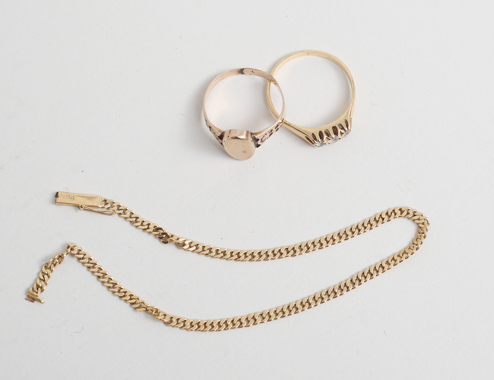 armband, ring med stenar (storlek 17,5/55) 18K, vikt 4,94 gram, antik ring, låghaltigt guld (storlek 16/51), vikt 1,47 gram