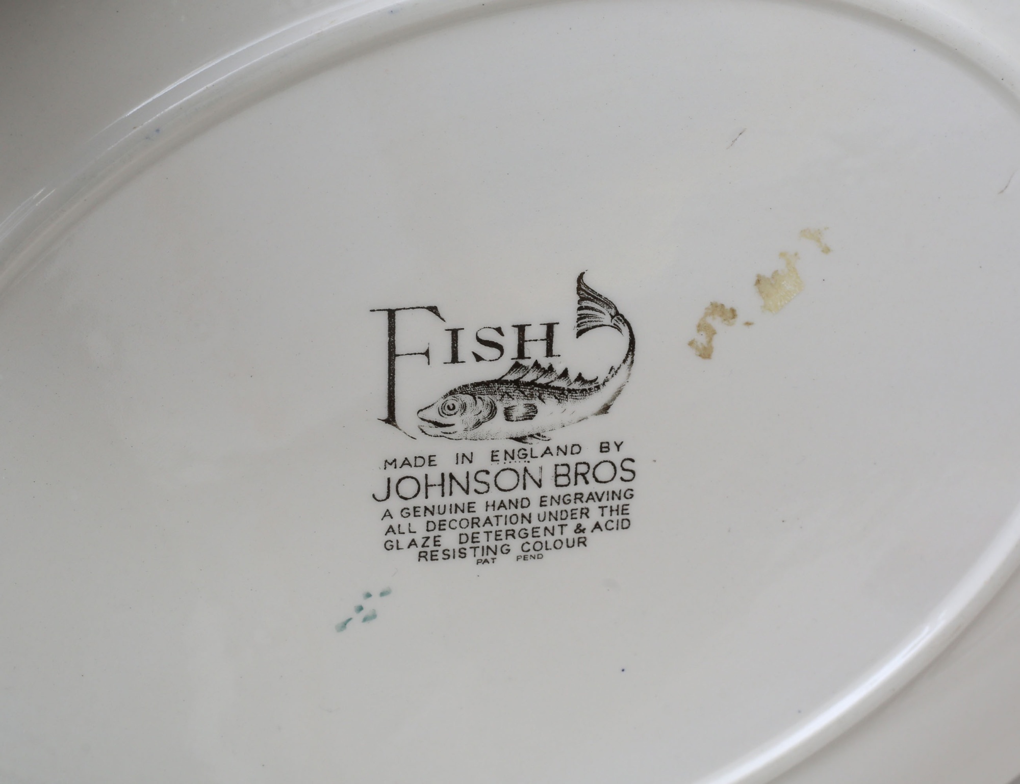 8 tallrikar 24x26, uppläggningsfat 41x32, samt såskanna, Johnson Bros England (10)