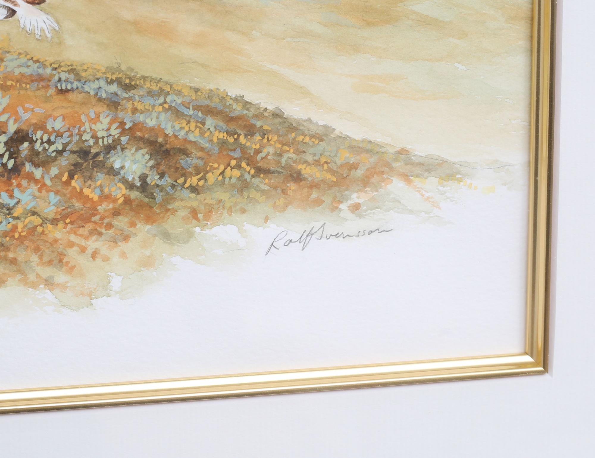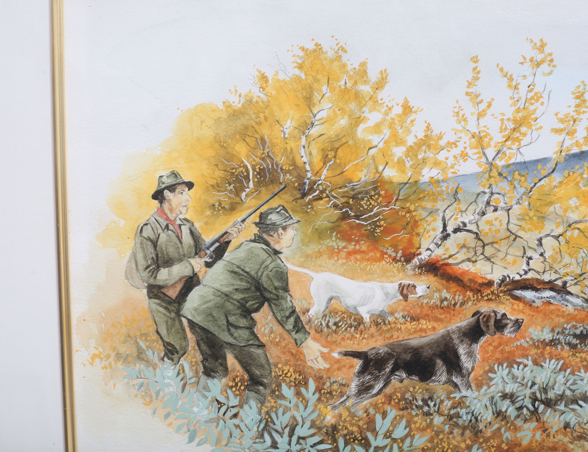 akvarell, jaktscen på fjället i höst, signerad, 27x47, rammått 47x65