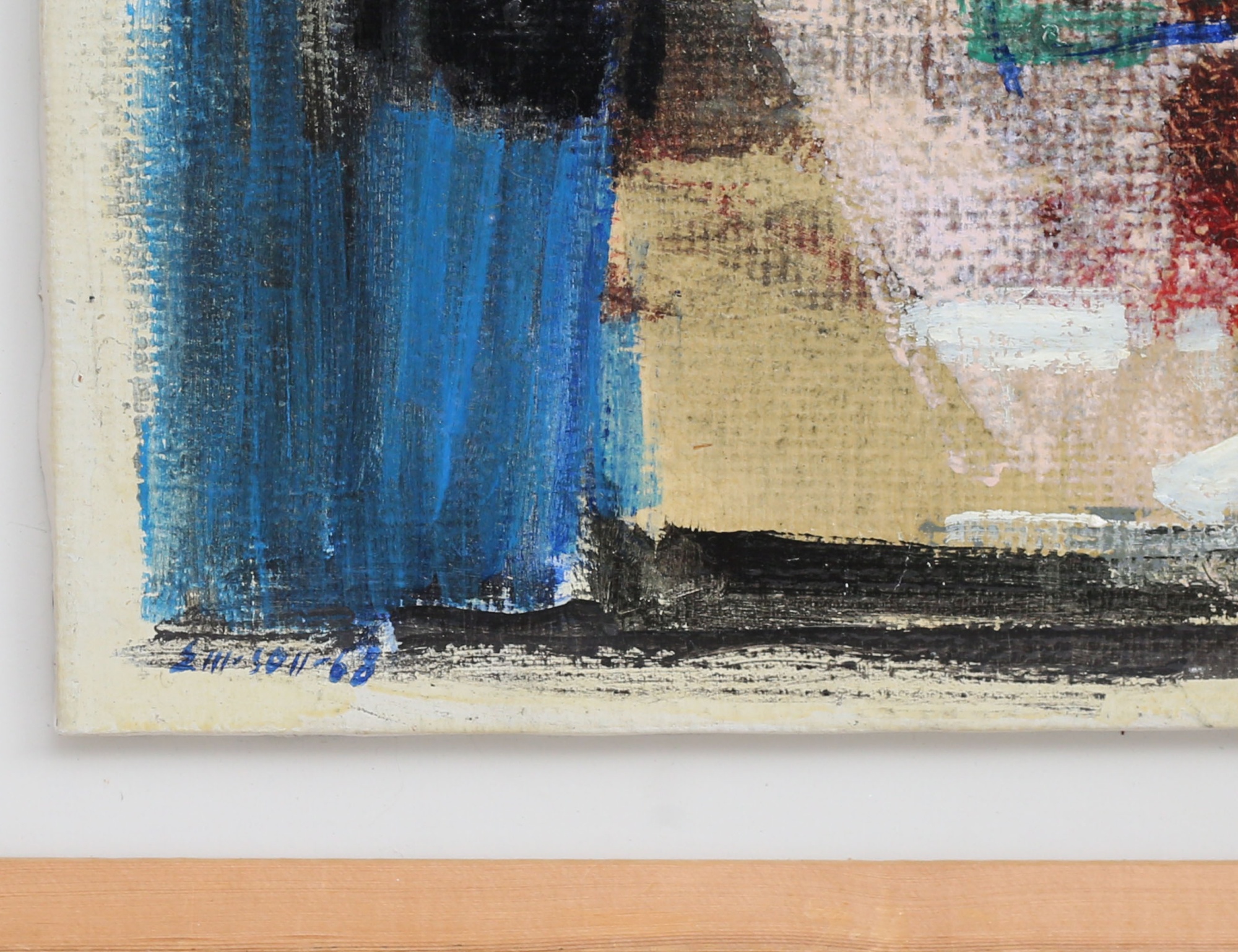 oljemålning på pannå, "Morgonfönster", signerad, 56x56