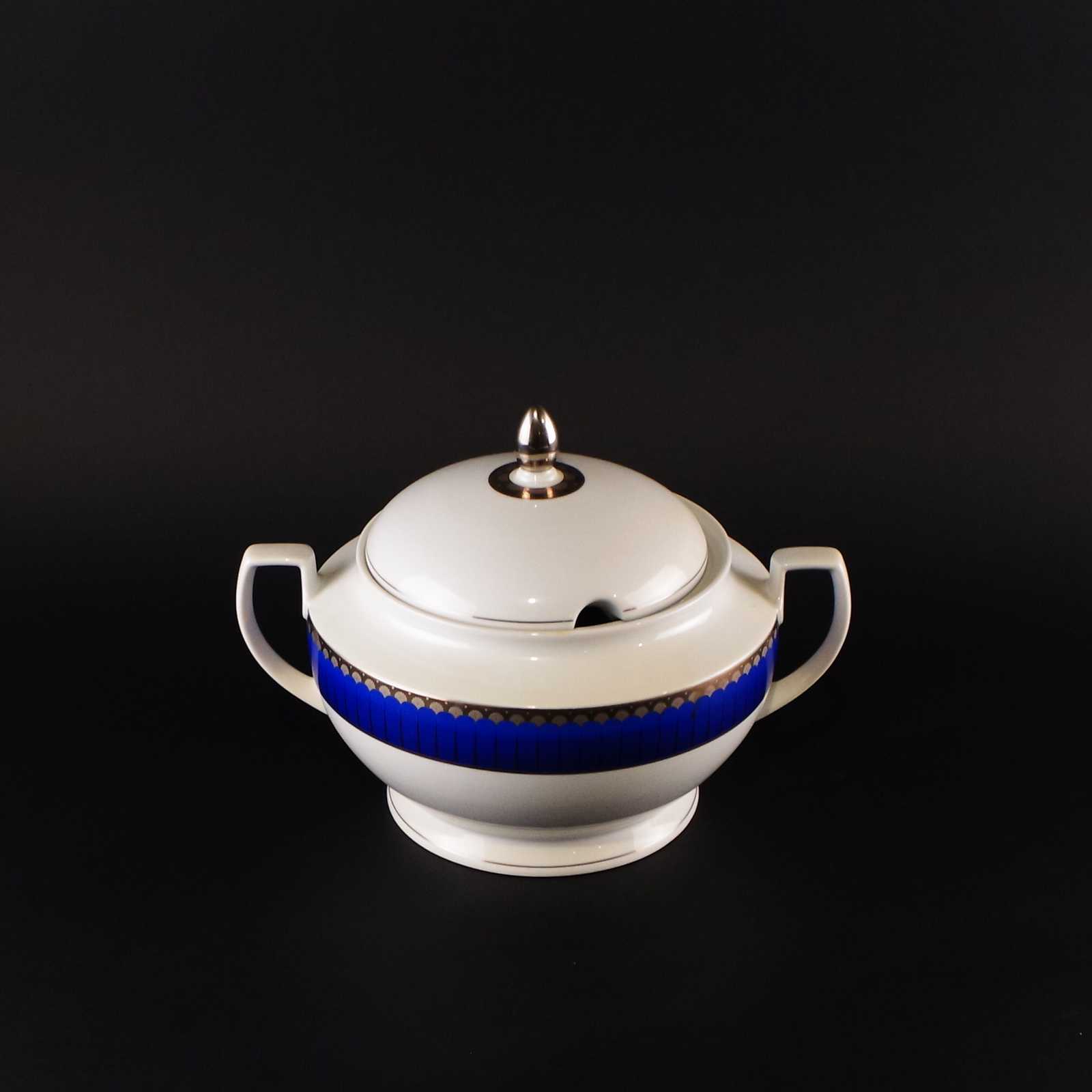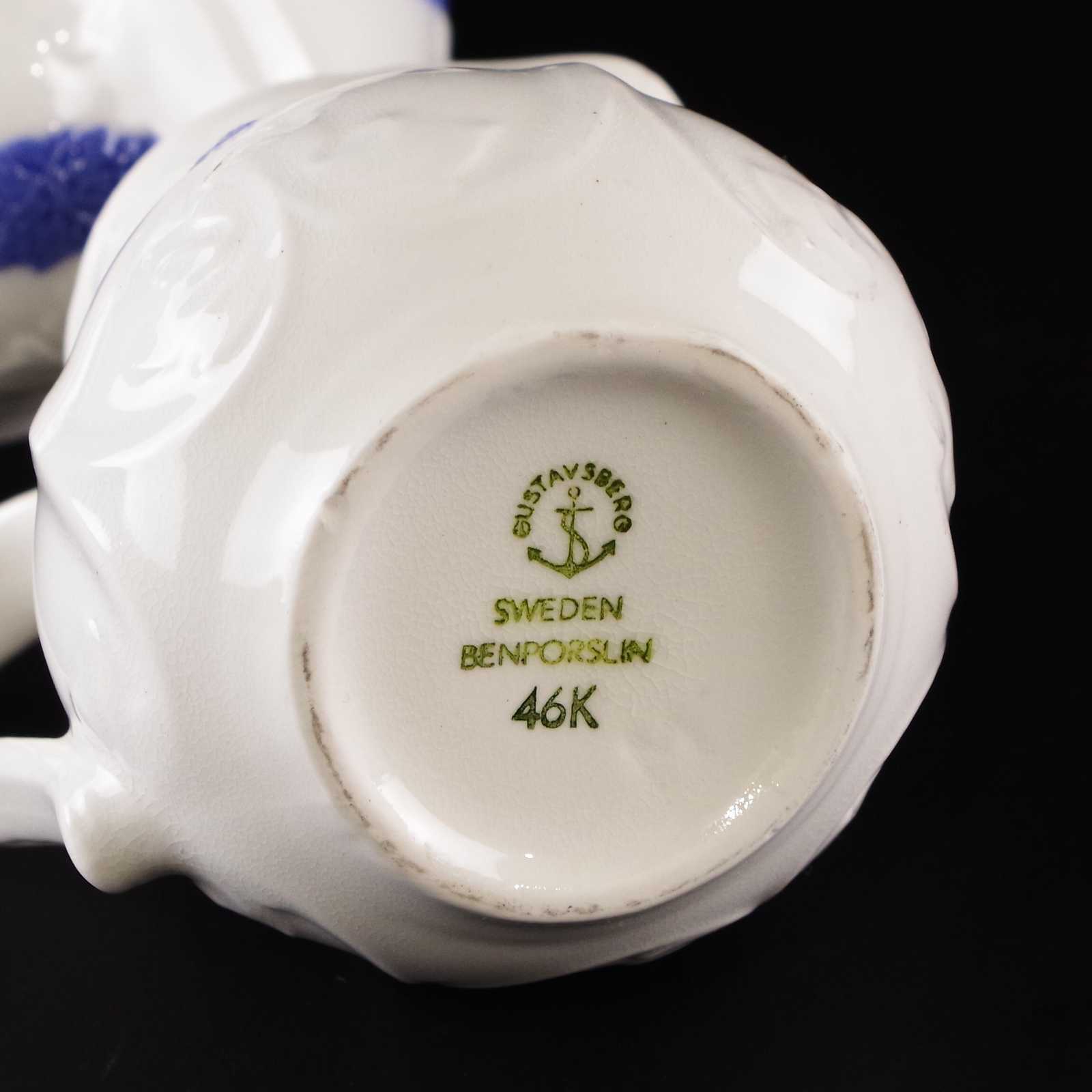 Bilder SOCKERSKÅL MED LOCK och GRÄDDKANNA, "Blå blom" Gustavsberg, Benporslin. H: 11cm (Sockerskål)
