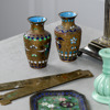 Fat och vaser i cloisonné. Propotionalcirkel i mässing.