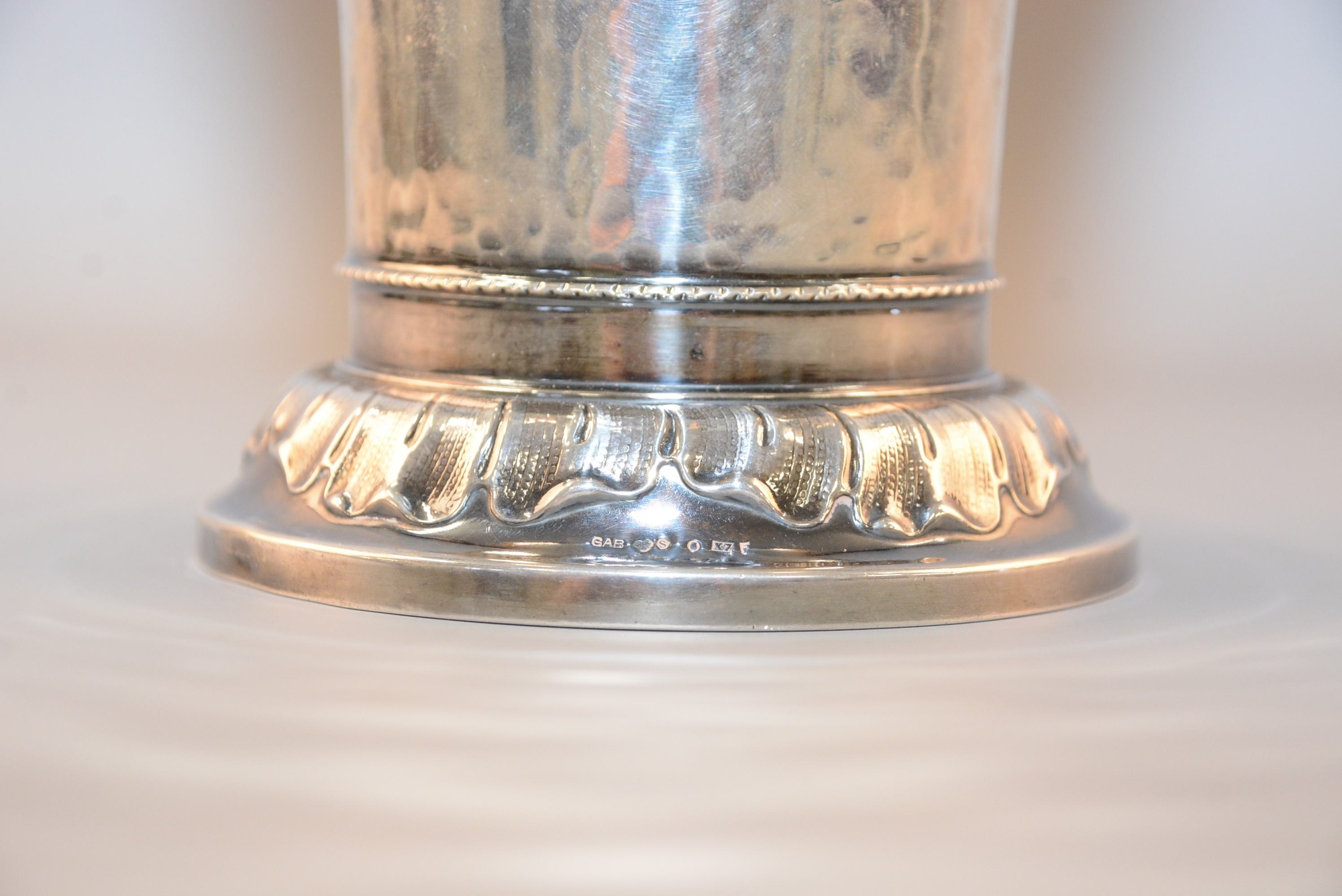 Vas med gravyr, silver diam: 16 cm, H: 23 cm