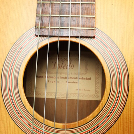 Bilder Akustisk gitarr. Lugnås, "Toledo" Hans Perssons Instrumentverkstad. L=98 cm.