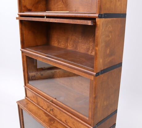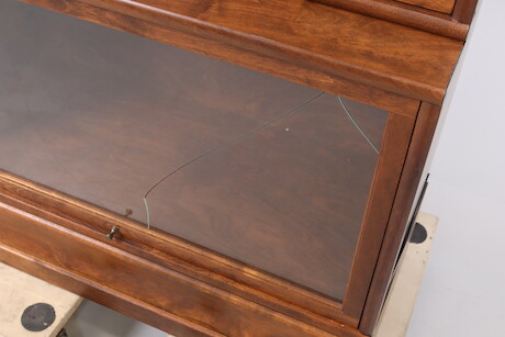 Bokskåp, 1900-talets andra hälft, betsat trä och glas, 6 skåpsdelar + låda, bredd 87 cm, djup 39 cm, höjd 252 cm