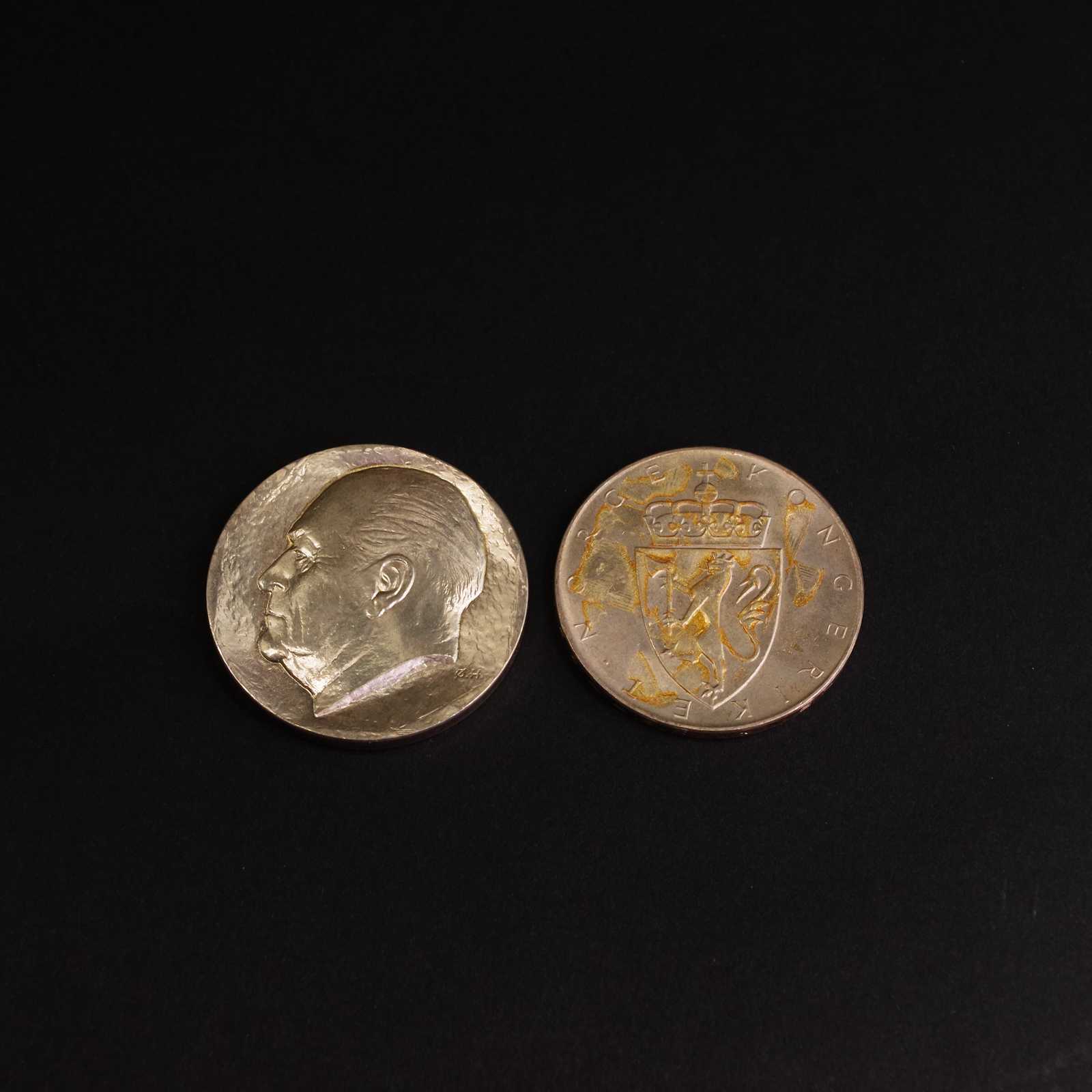 Bilder SAMLARMYNT Norge 50:- 1978 silver 92,5% och 10:- 1964 silver 90%