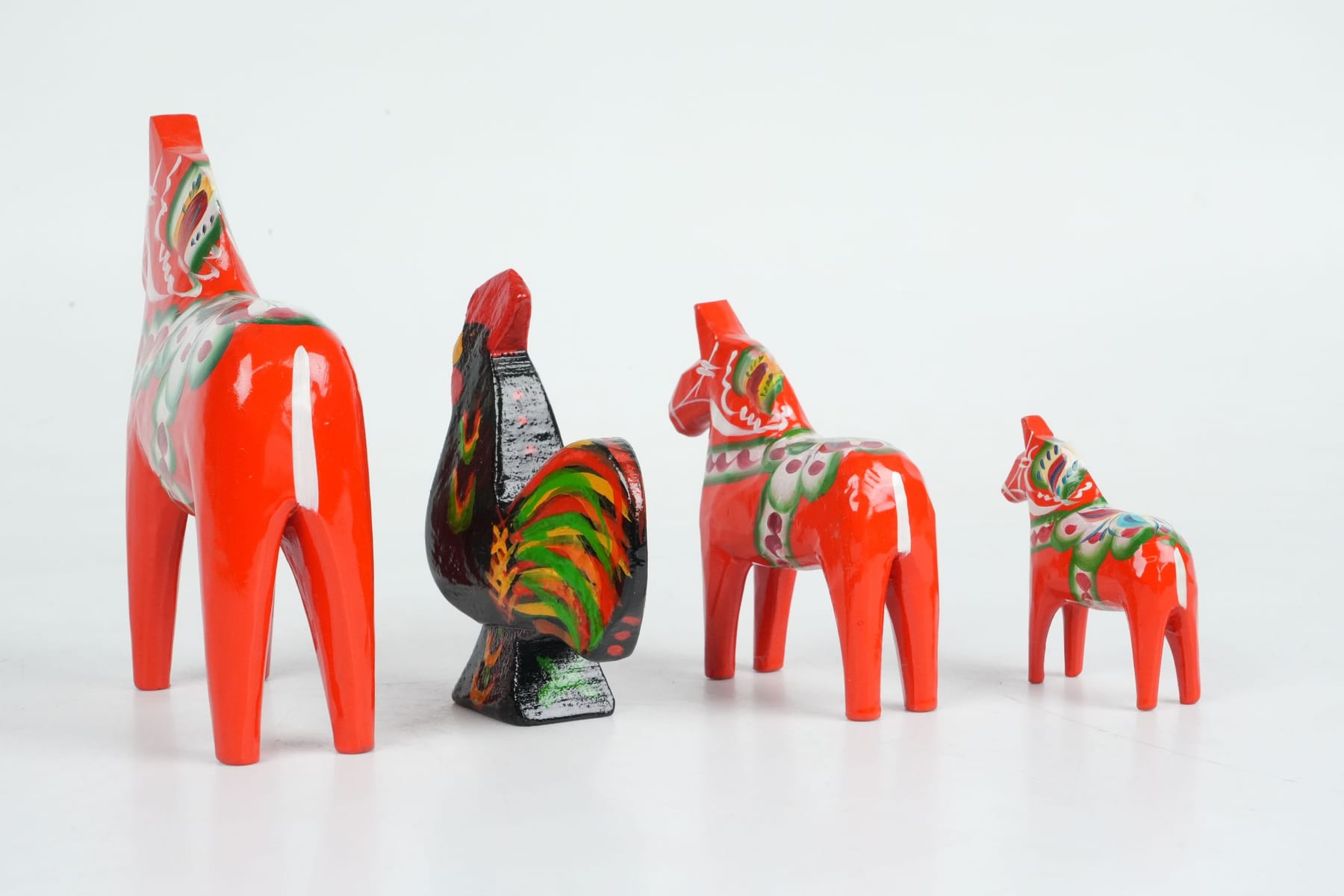 DALAHÄSTAR, 3 st, samt tupp, bl.a. Nils Olsson, Nusnäs