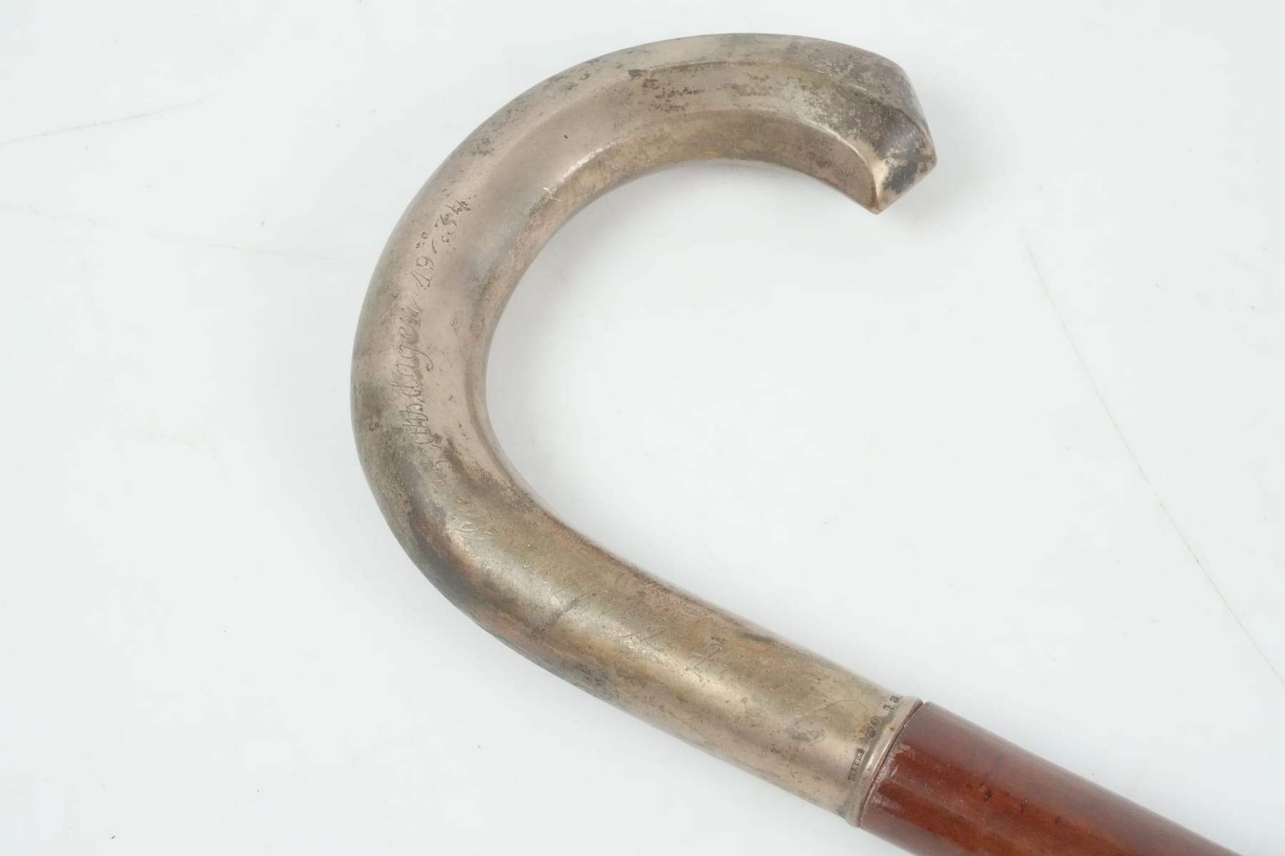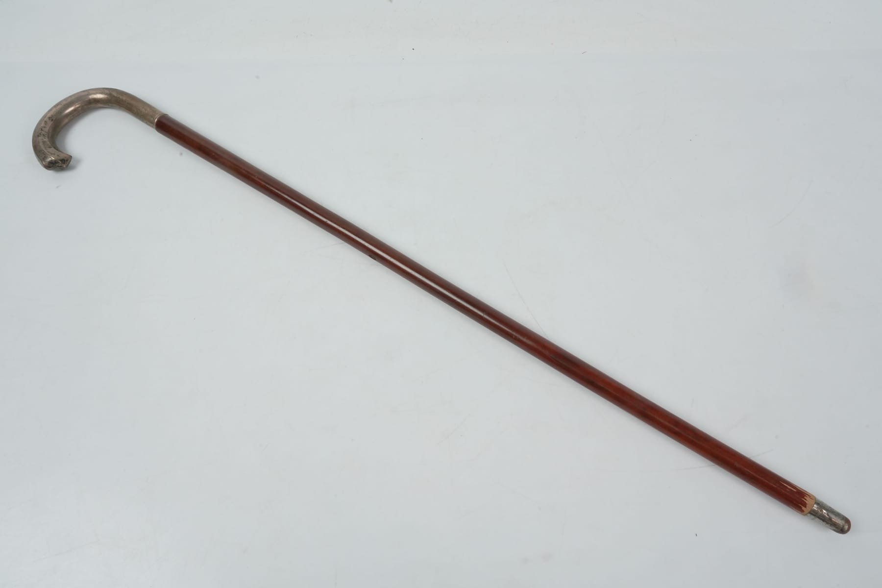 PROMENADKÄPP, trä med handtag i silver