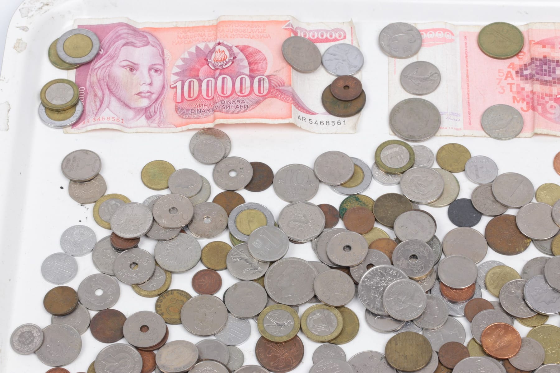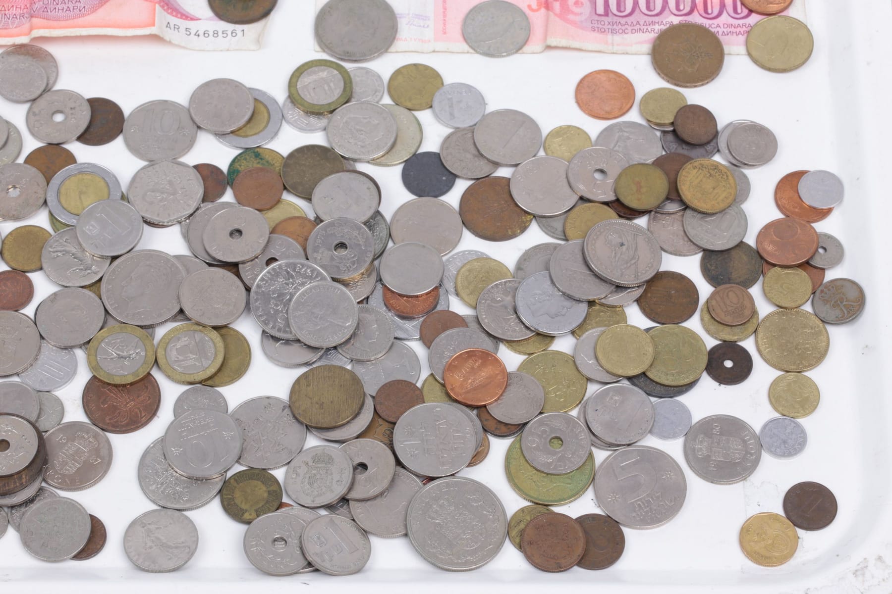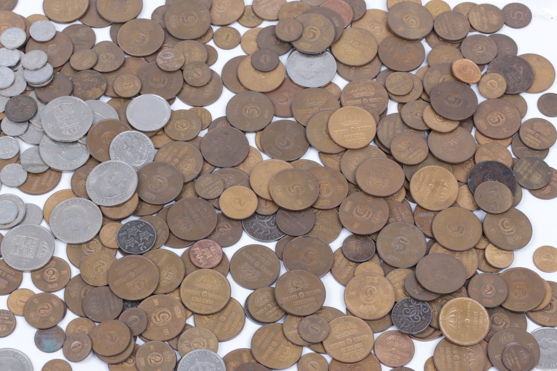 Bilder PARTI med mynt och sedlar, bl.a. Sverige, Jugoslavien, Grekland, Danmark