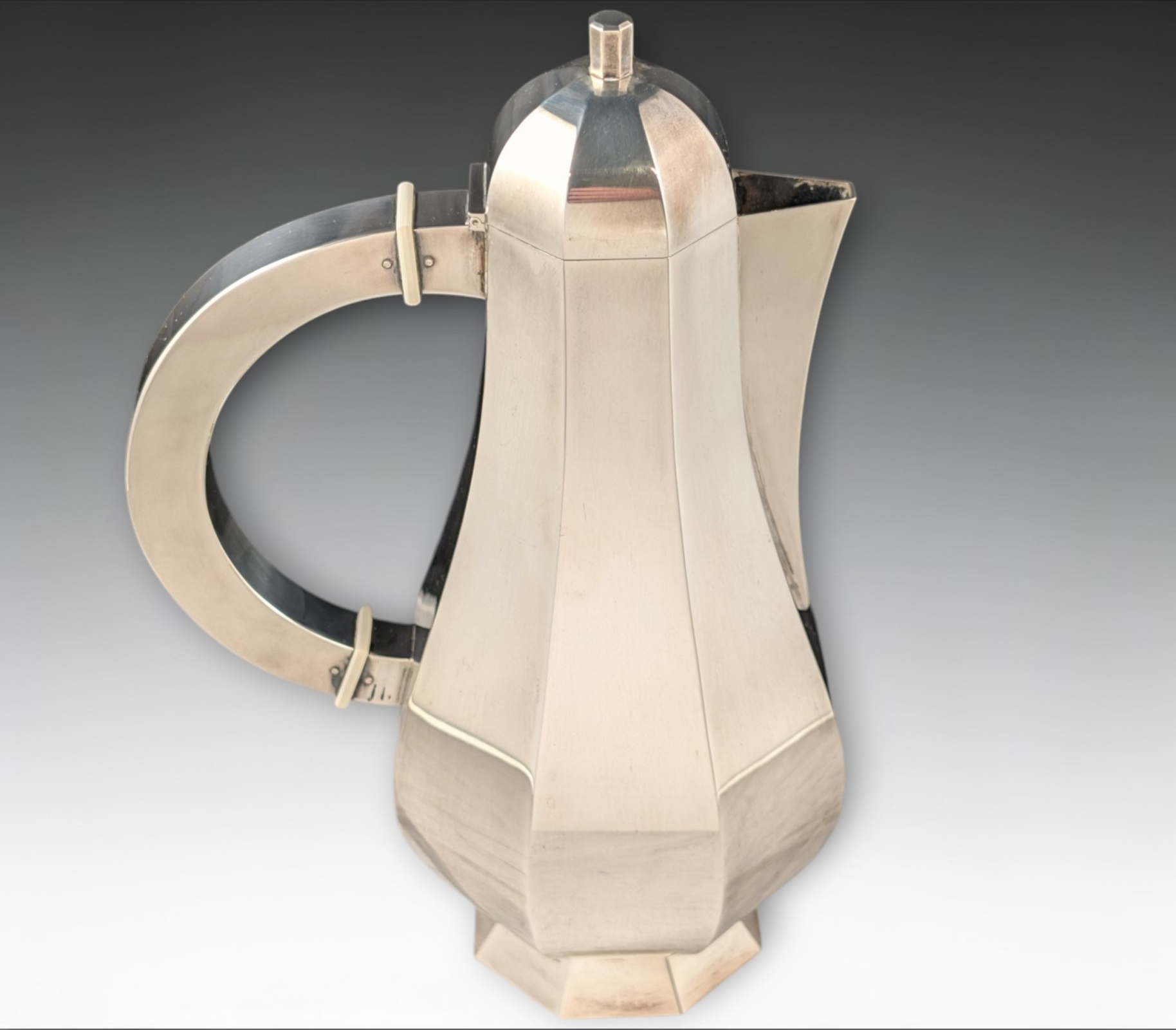WIWEN NILSSON, kaffeservis, tre delar, Lund 1962, sterling. Fasetterad päronform, på låg fotklack.