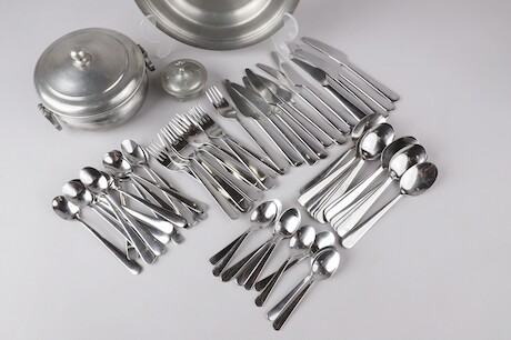 Tennföremål, rostfria bestick m.m.