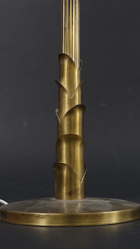 Bordslampa, 1940-tal, mässing, troligtvis AB E Hansson & Co, Malmö, höjd 60 cm inklusive skärm