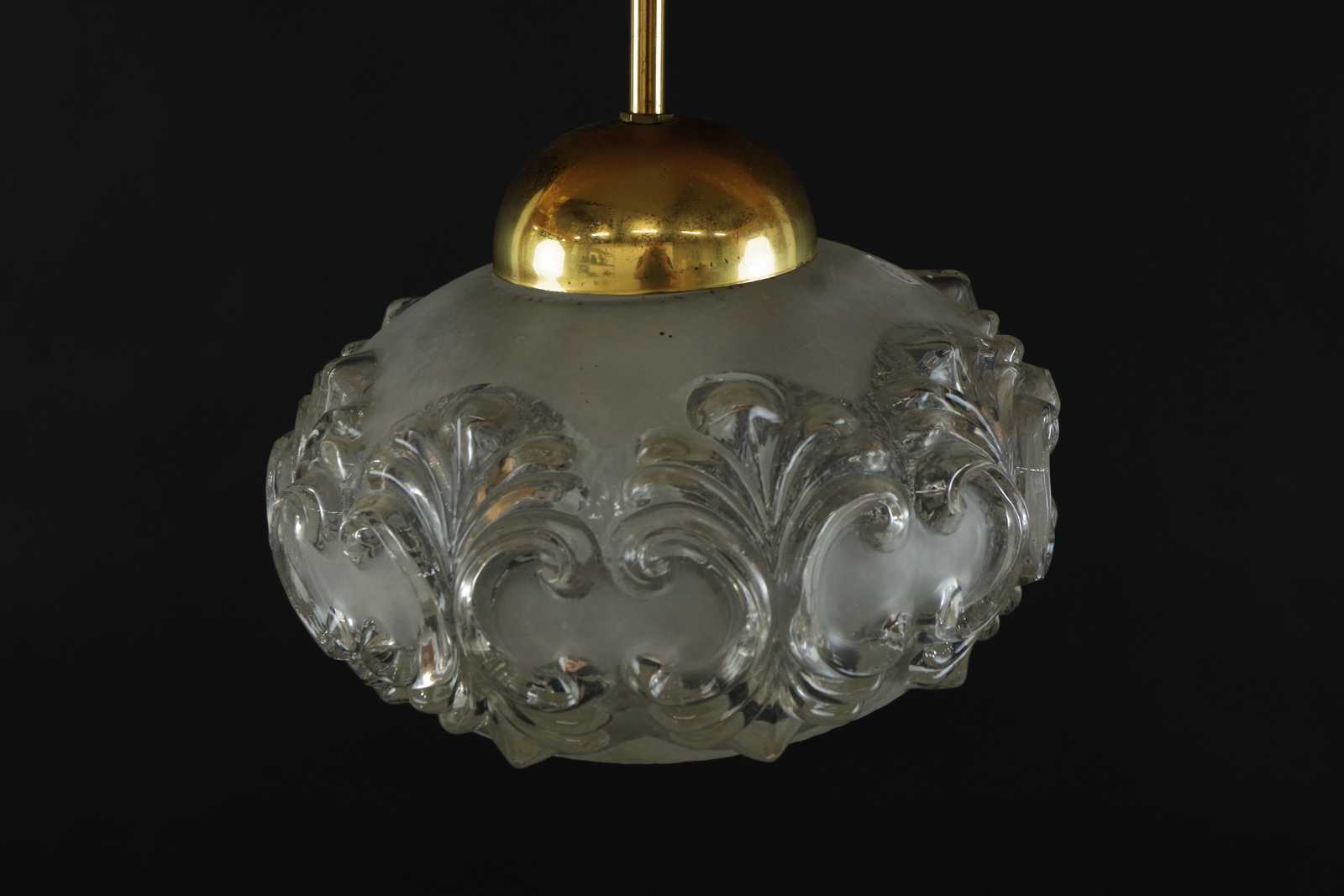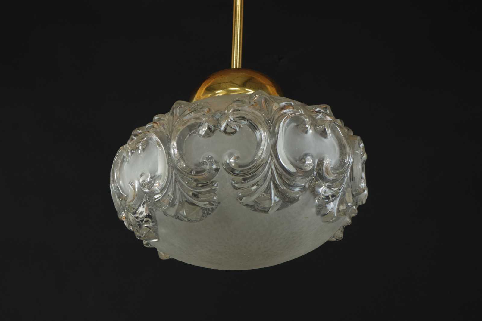 TAKLAMPA i mässing & glas, 1900 talets andra hälft. D:22cm