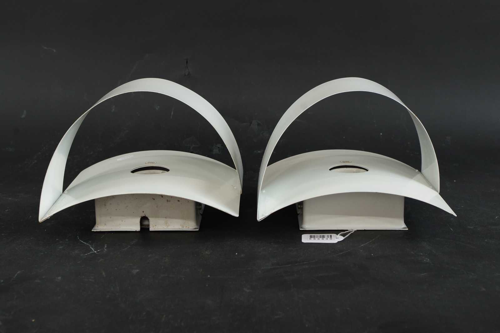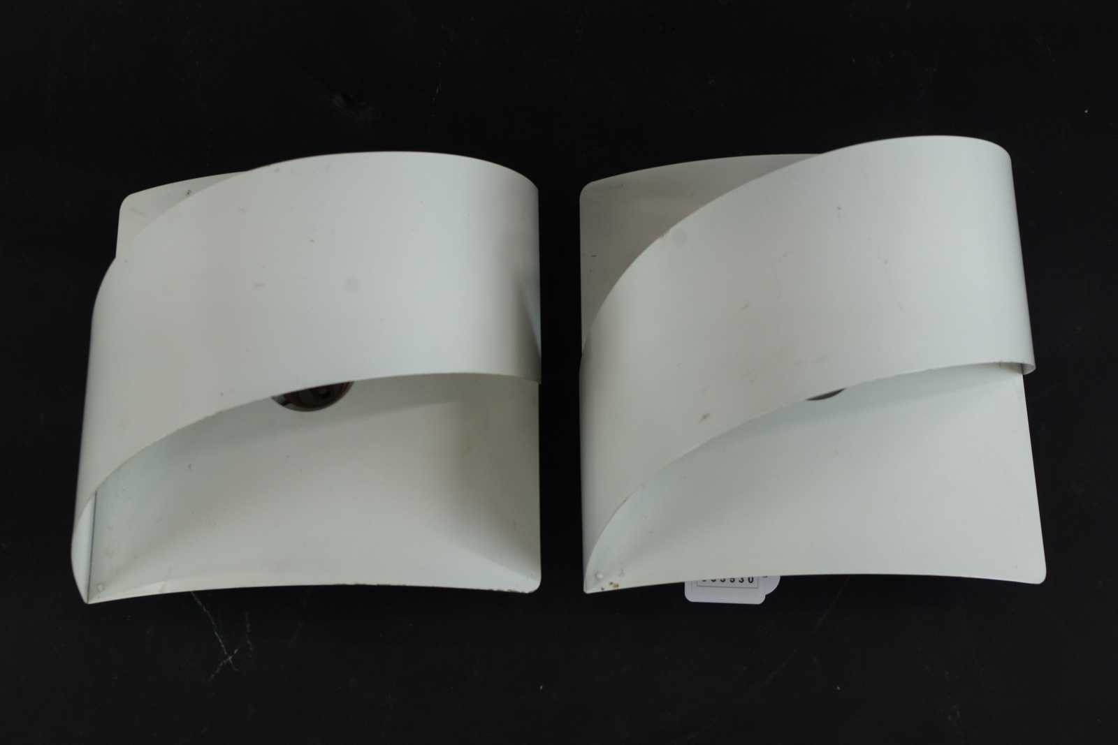 Bilder VÄGGLAMPOR Paret, Peter Celsing "Band", Falkenbergs belysning, lackerad plåt, 1900 talets slut. H:20cm (mindre skavmärken förekommer)