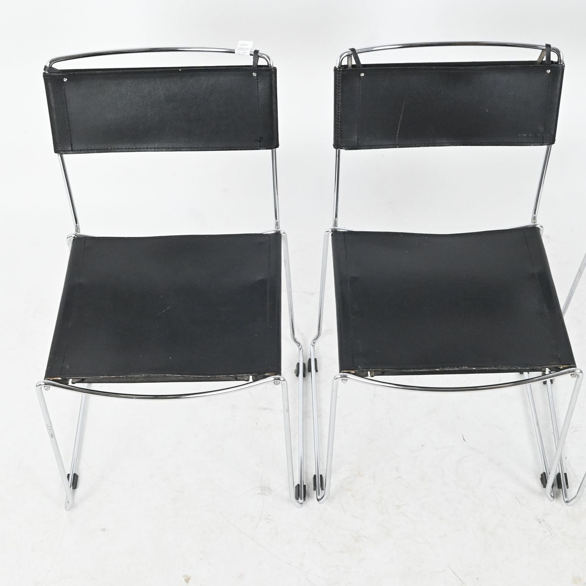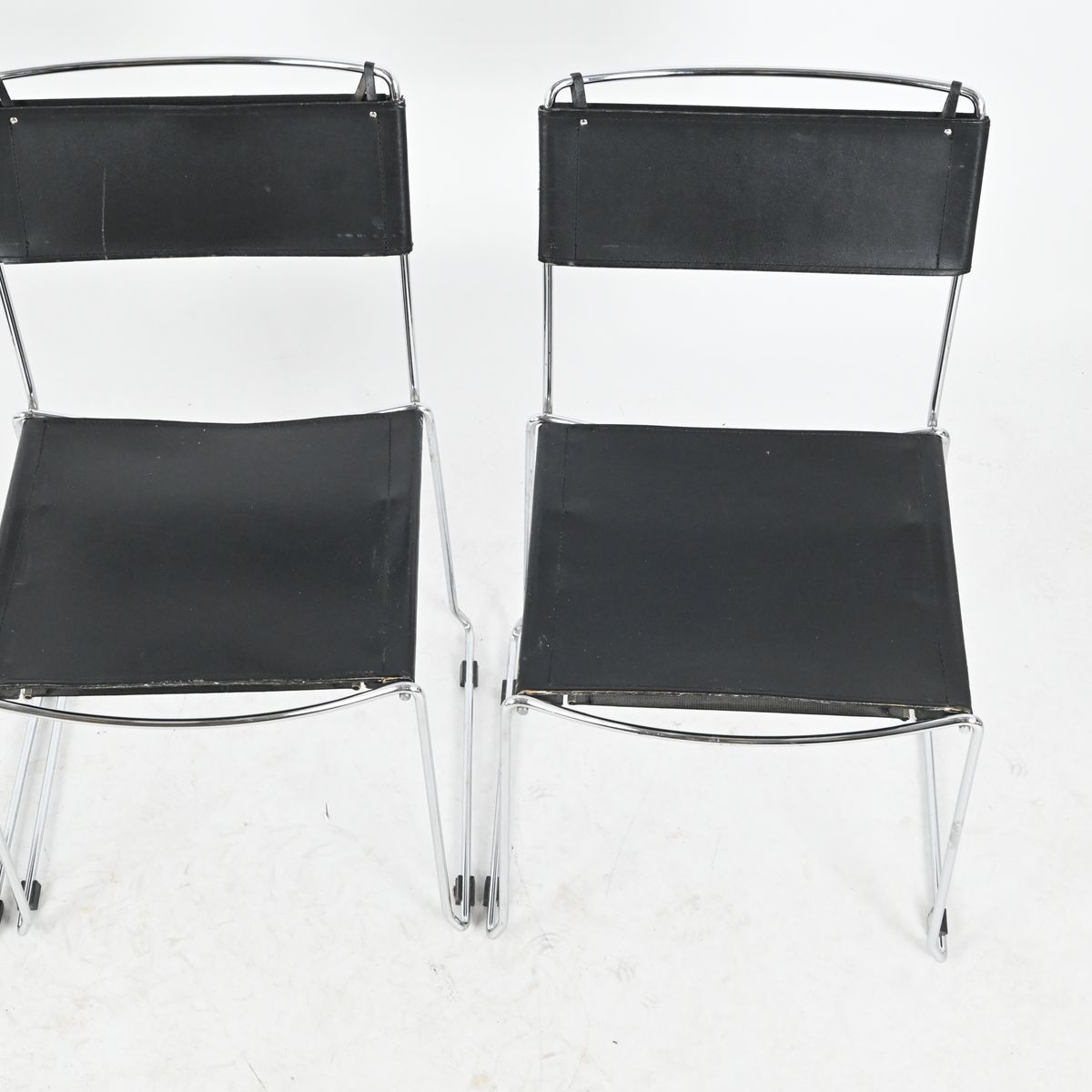 3 Stolar, svart skinn och krom, Italien 1980-tal