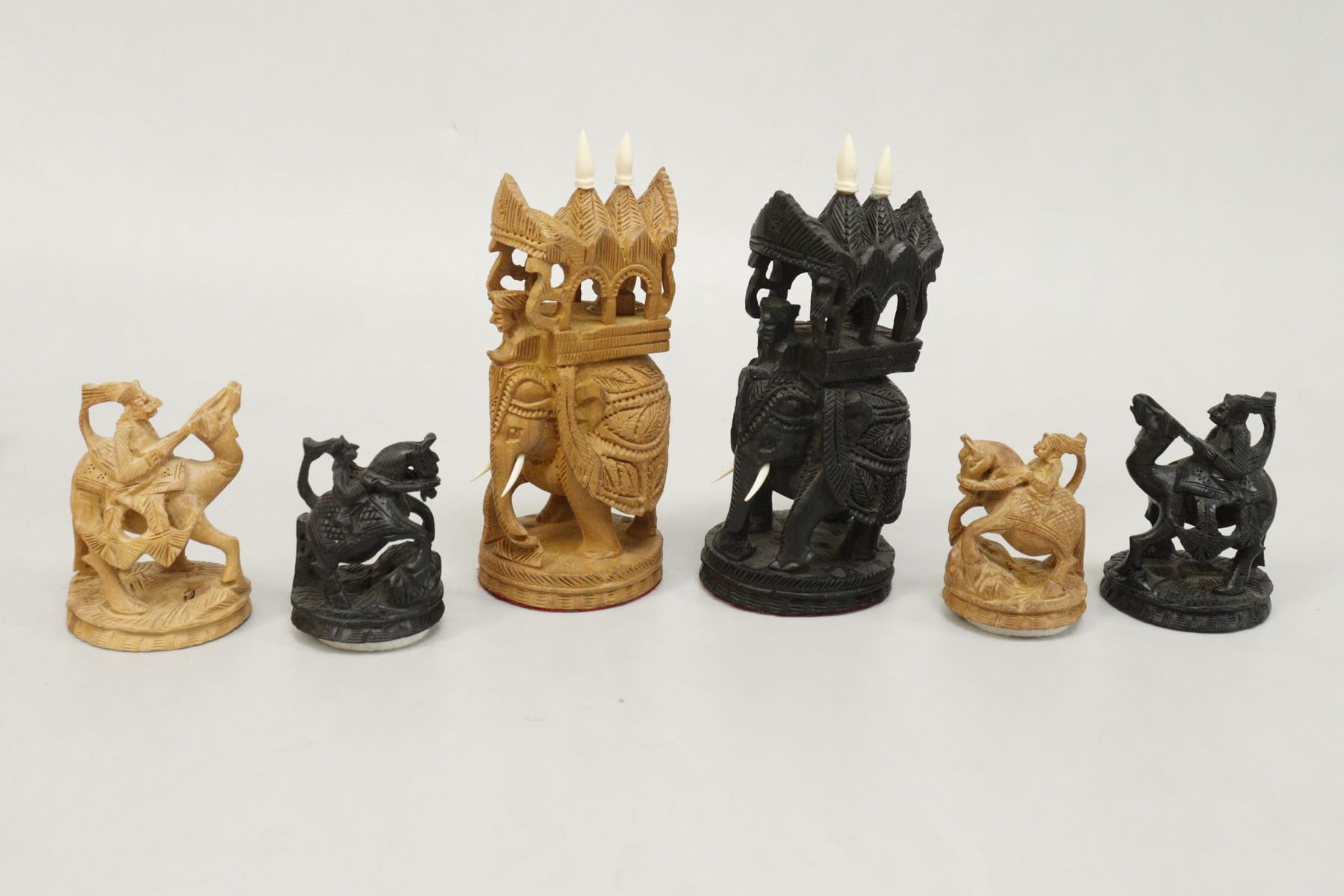 Schackpjäser, trä, troligen Indien