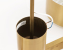 Mässing. Med 10st ljuspunkter. Invändigt vitlackade skärmar. Raster av plast. Etikettmärkt.
