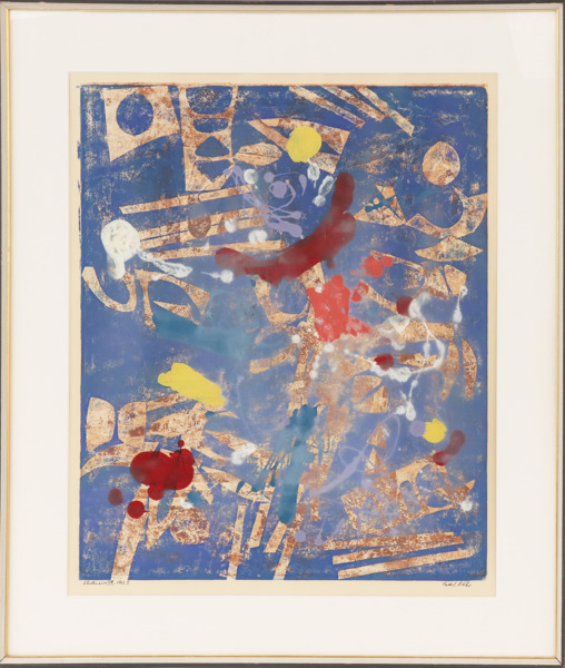 Färglitografi, "Electronics VIII". Signerad och numrerad 1/1. Daterad 1963. Inramad.