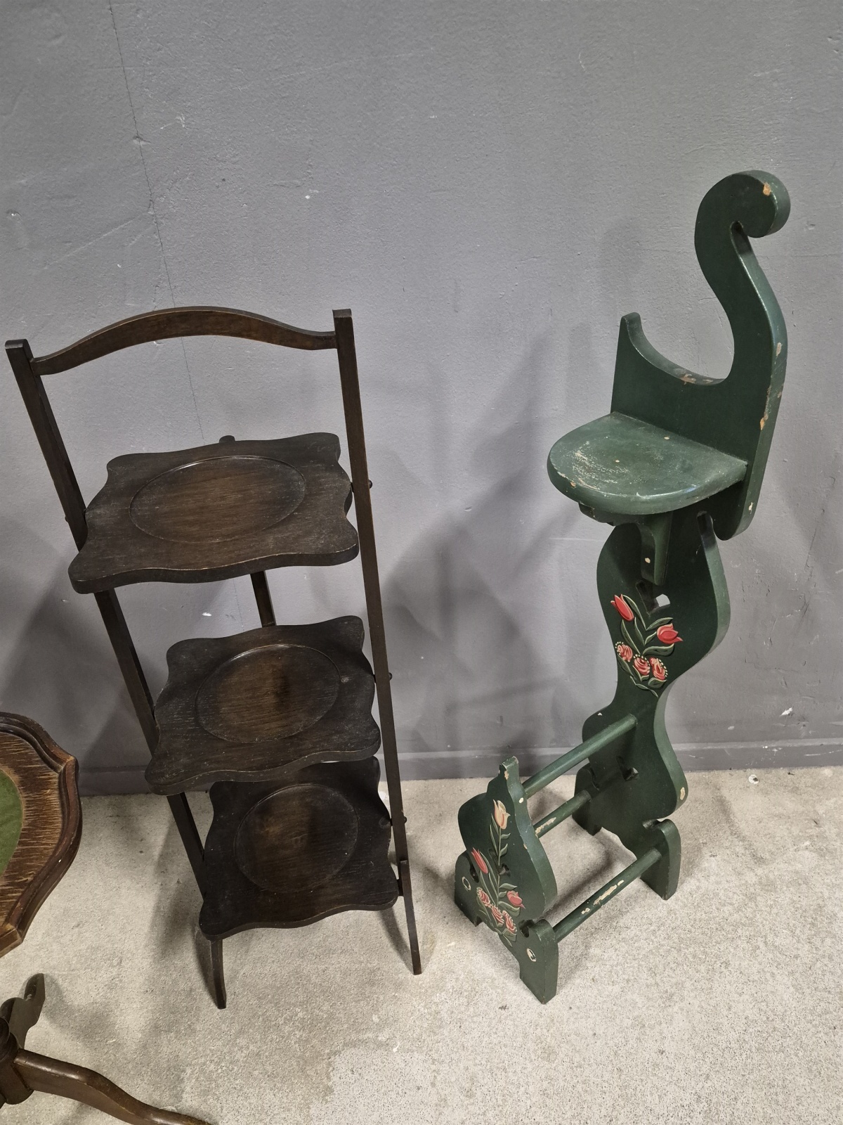 Småmöbler 4 st bla cake stand och pelarbord, högsta höjd 95 cm