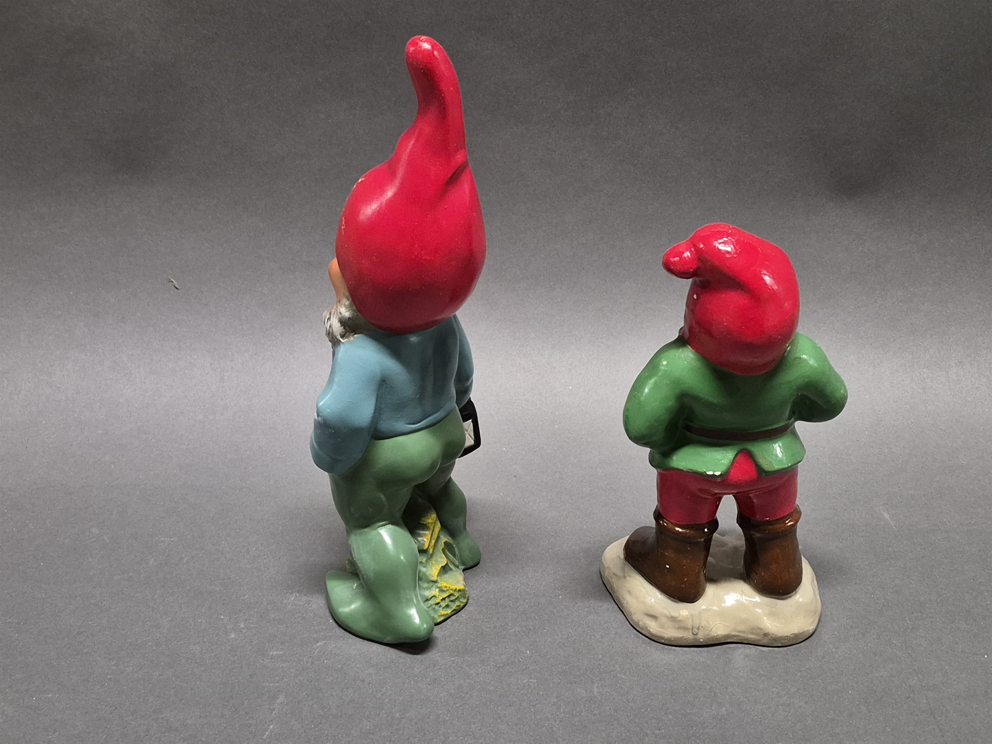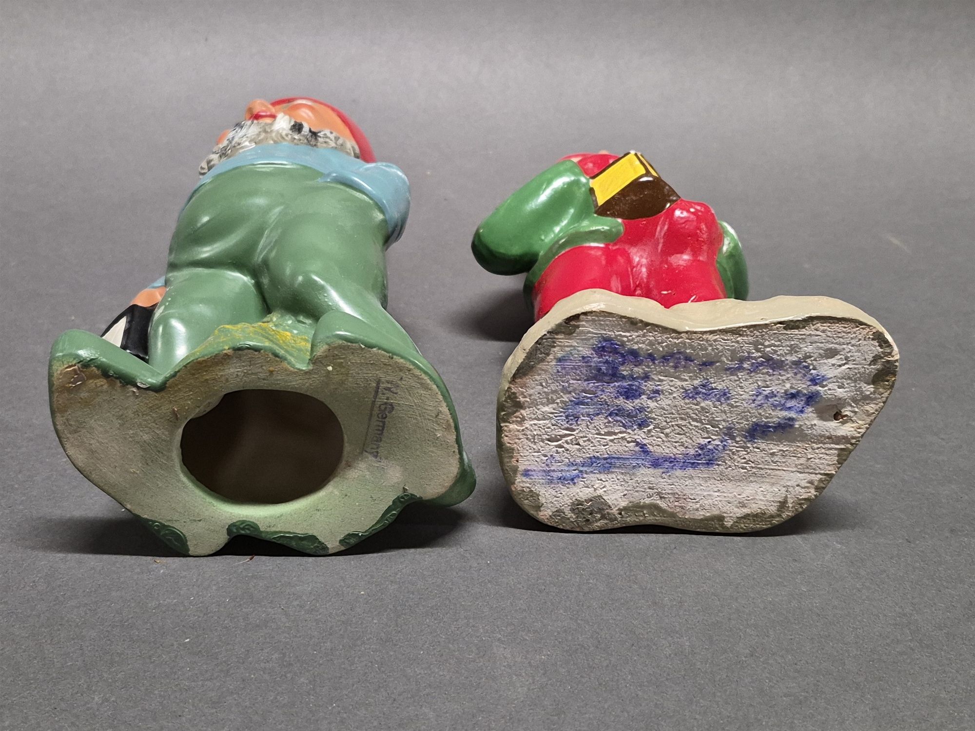 Tomtar 2 st, keramik/gips, bl.a märkt West Germany högsta 32 cm