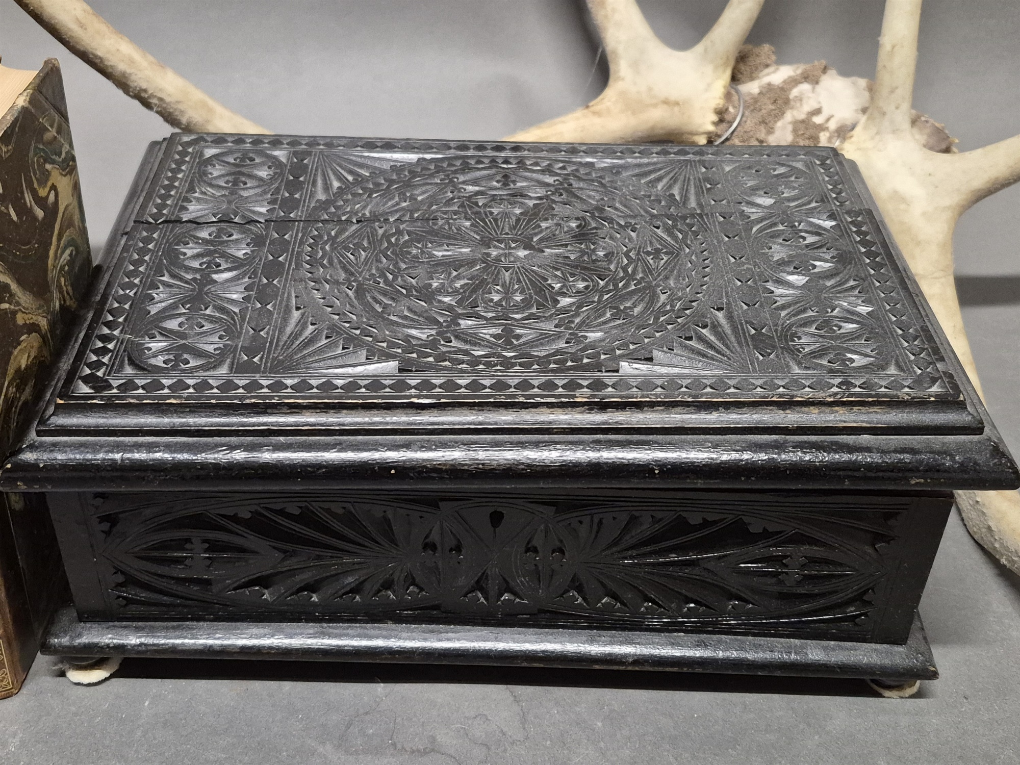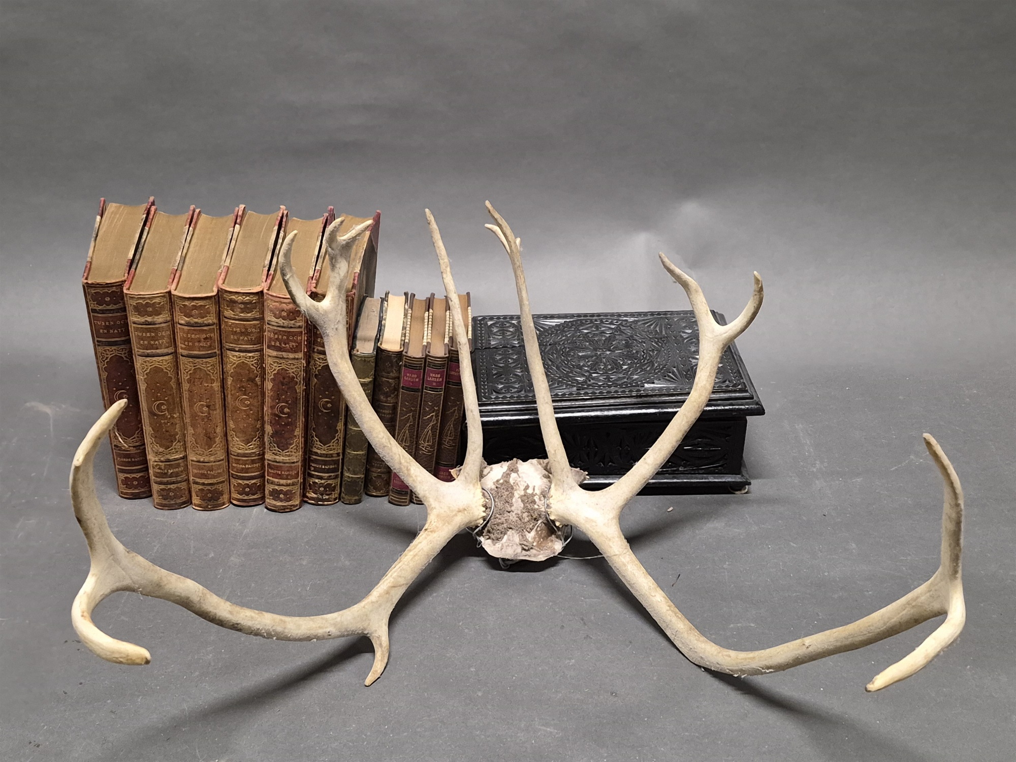 Renhorn, skrin med spegel & böcker halv franska, bredd horn60 cm