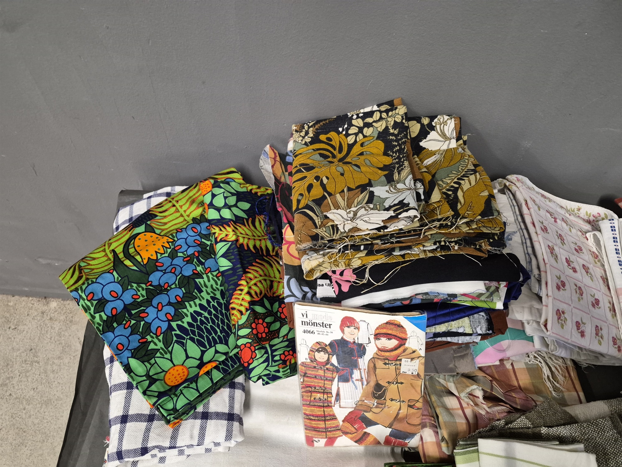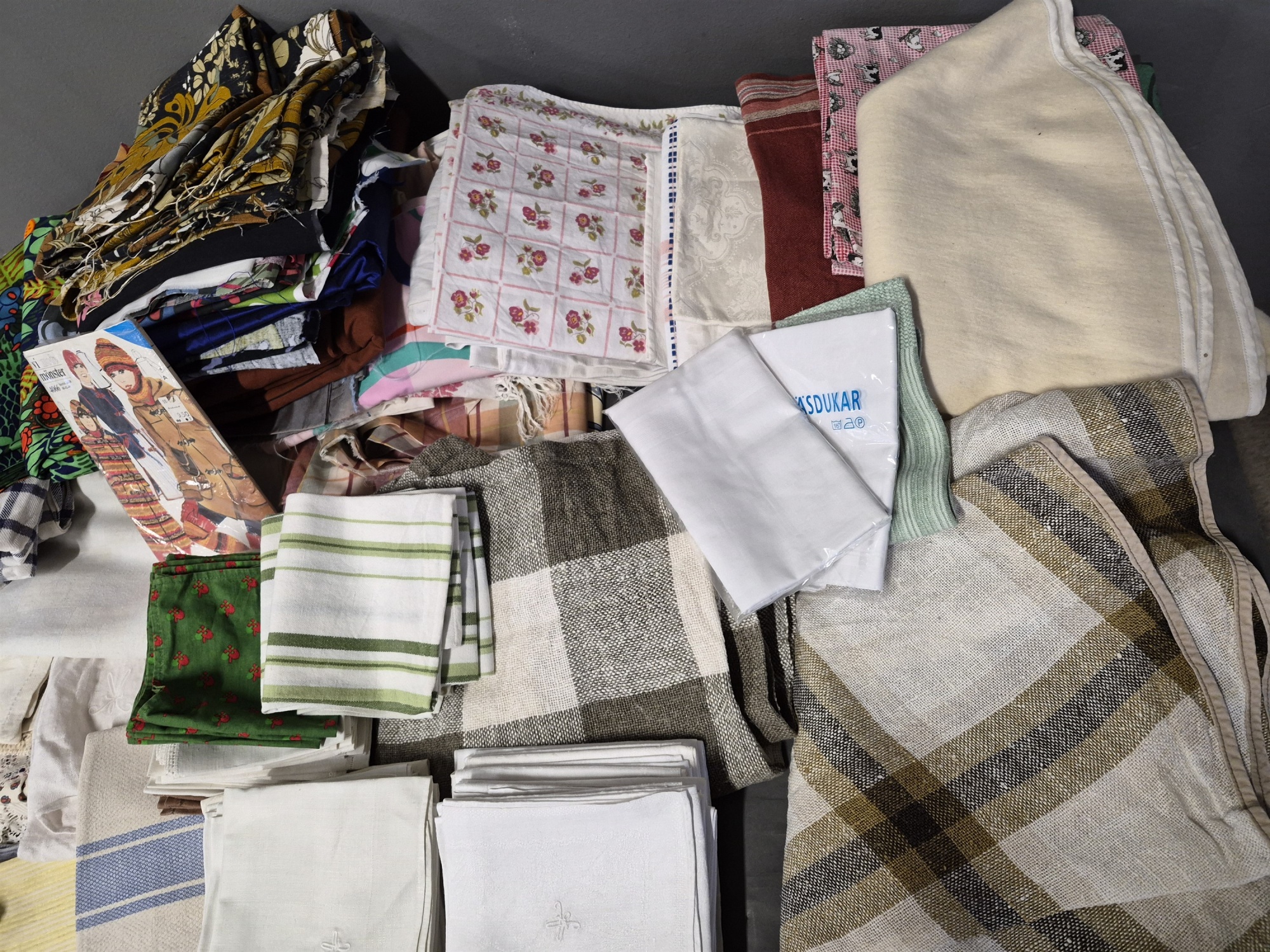 Bilder Parti textilier, 1 st låda + 1 mindre säck