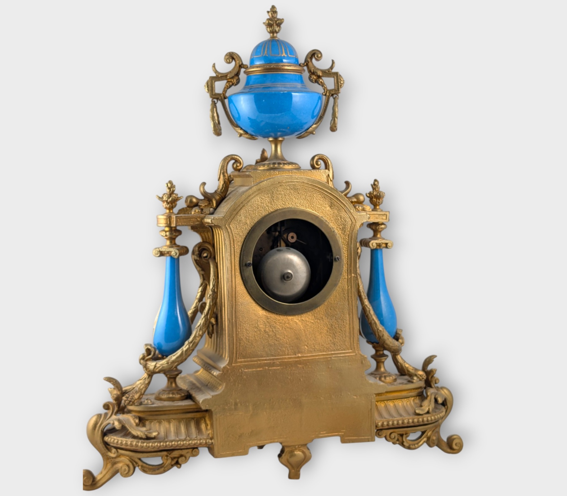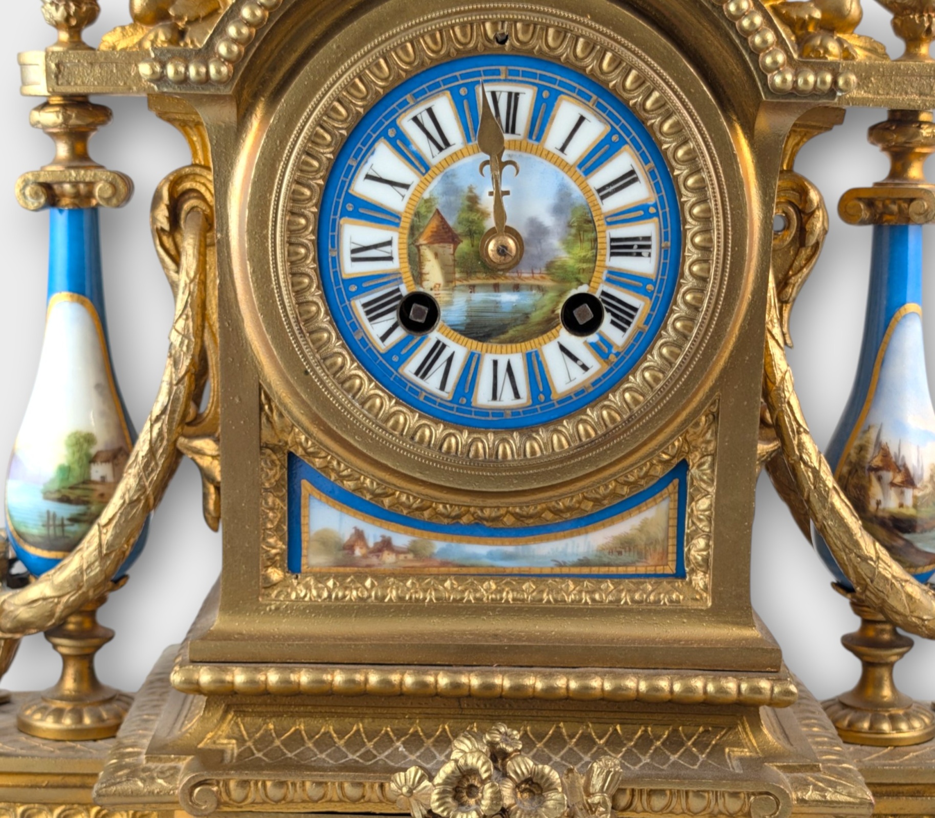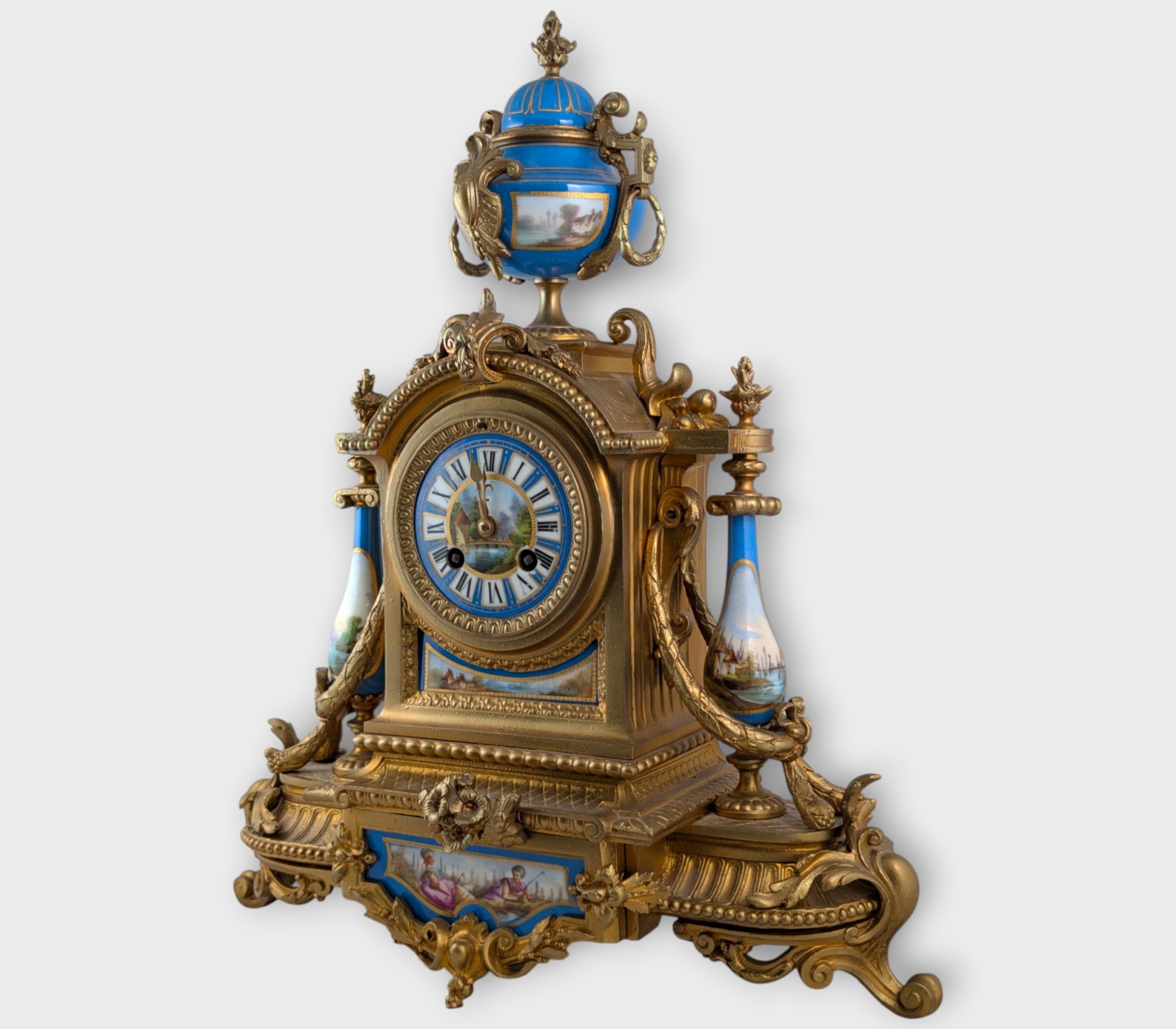 Bordspendyl Louis XV-stil, bronserad metall med infällningar av handmålat porslin i sèvres-stil,
