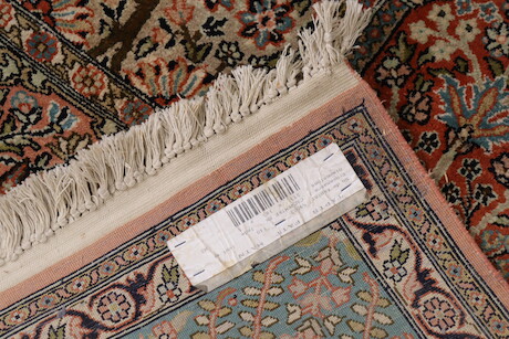 Matta, handknuten, Kashmir, silke på bomullsvarp, trädgårdsmotiv 271 X 183 cm