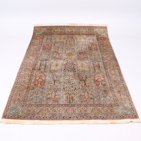 Auktioner Mattor & Textil Matta, handknuten, Kashmir, silke på bomullsvarp, trädgårdsmotiv 271 X 183 cm