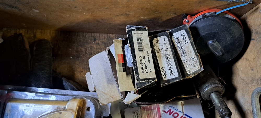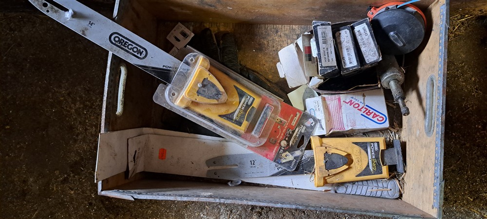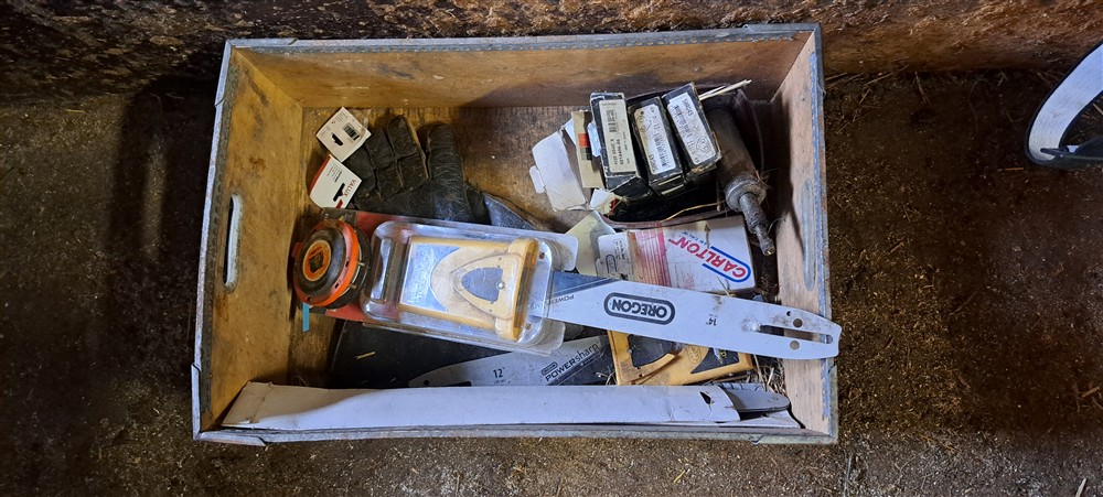 Kedjor, svärd, måttband, mm