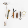 Metallfat, dalahäst, m.m, 11 delar, bl a vinkork i silver, längsta 38 cm