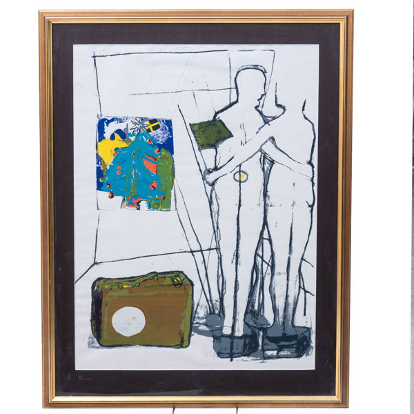 Figurkomposition, monogramsignerad, färglitografi, bildmått 94 x 70 cm